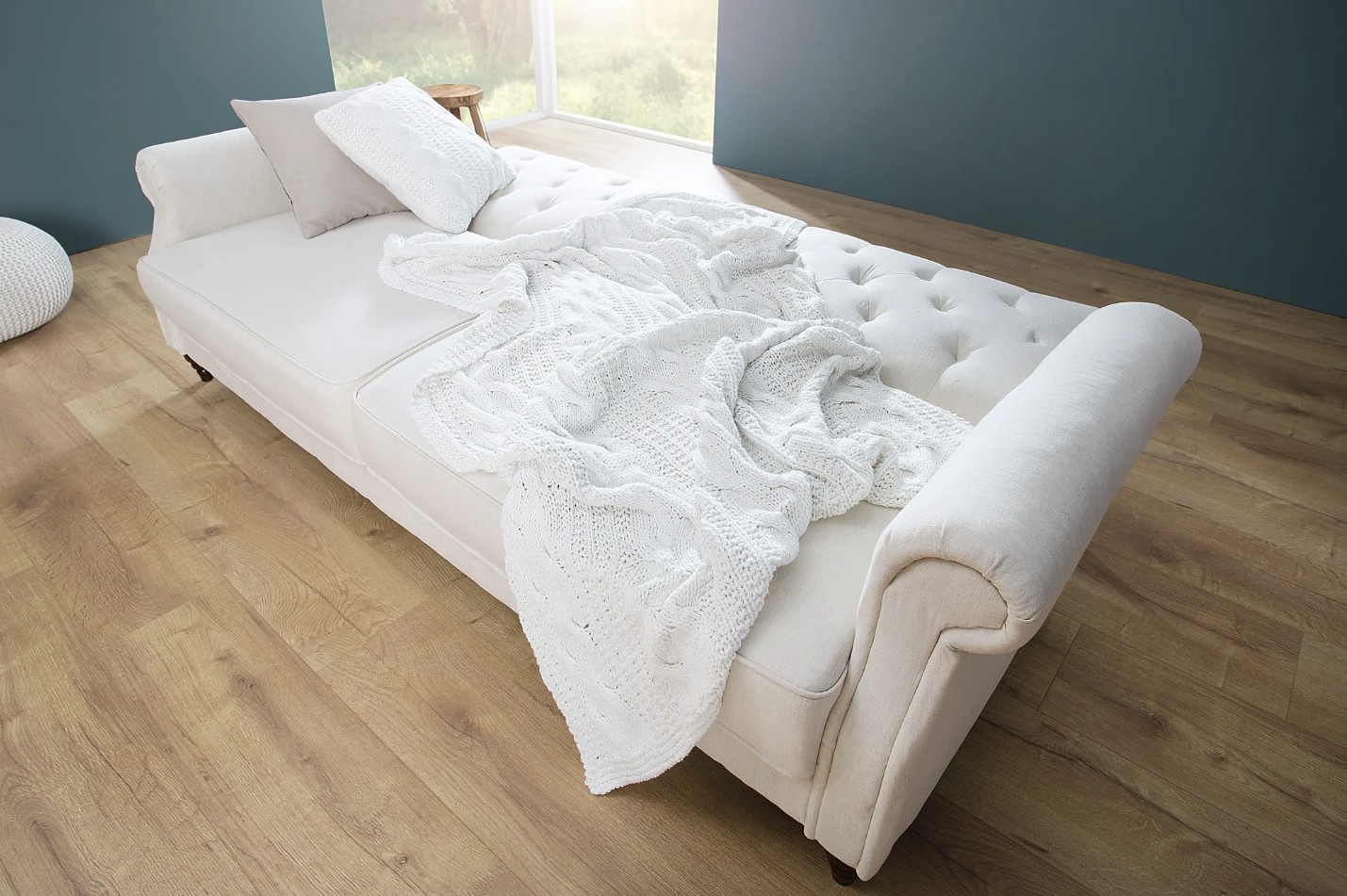 Le canapé droit MILES en blanc séduit par son style classique et son allure intemporelle. Sa teinte claire apporte de la luminosité au salon, tandis que ses lignes équilibrées en font une pièce facile à intégrer dans différents univers déco.