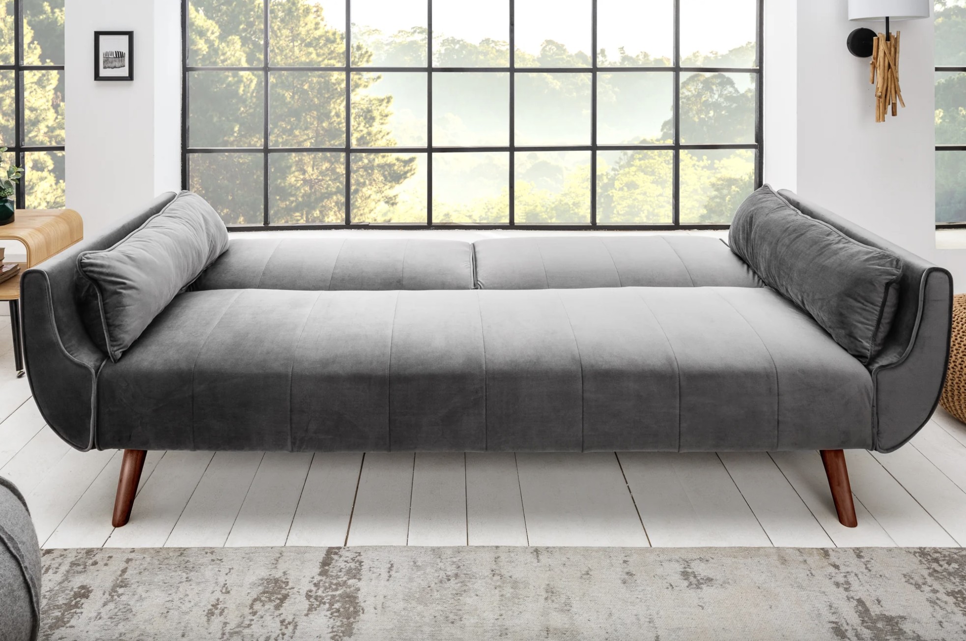 Ce canapé repose sur un cadre en bois de peuplier, associé à des pieds en bois d’hévéa, garantissant stabilité et durabilité. Son revêtement en velours polyester à aspect rainuré souligne le caractère moderne du modèle. Pratique, il intègre une fonction convertible permettant de créer facilement un couchage d’appoint, sans compromis sur l’esthétique.