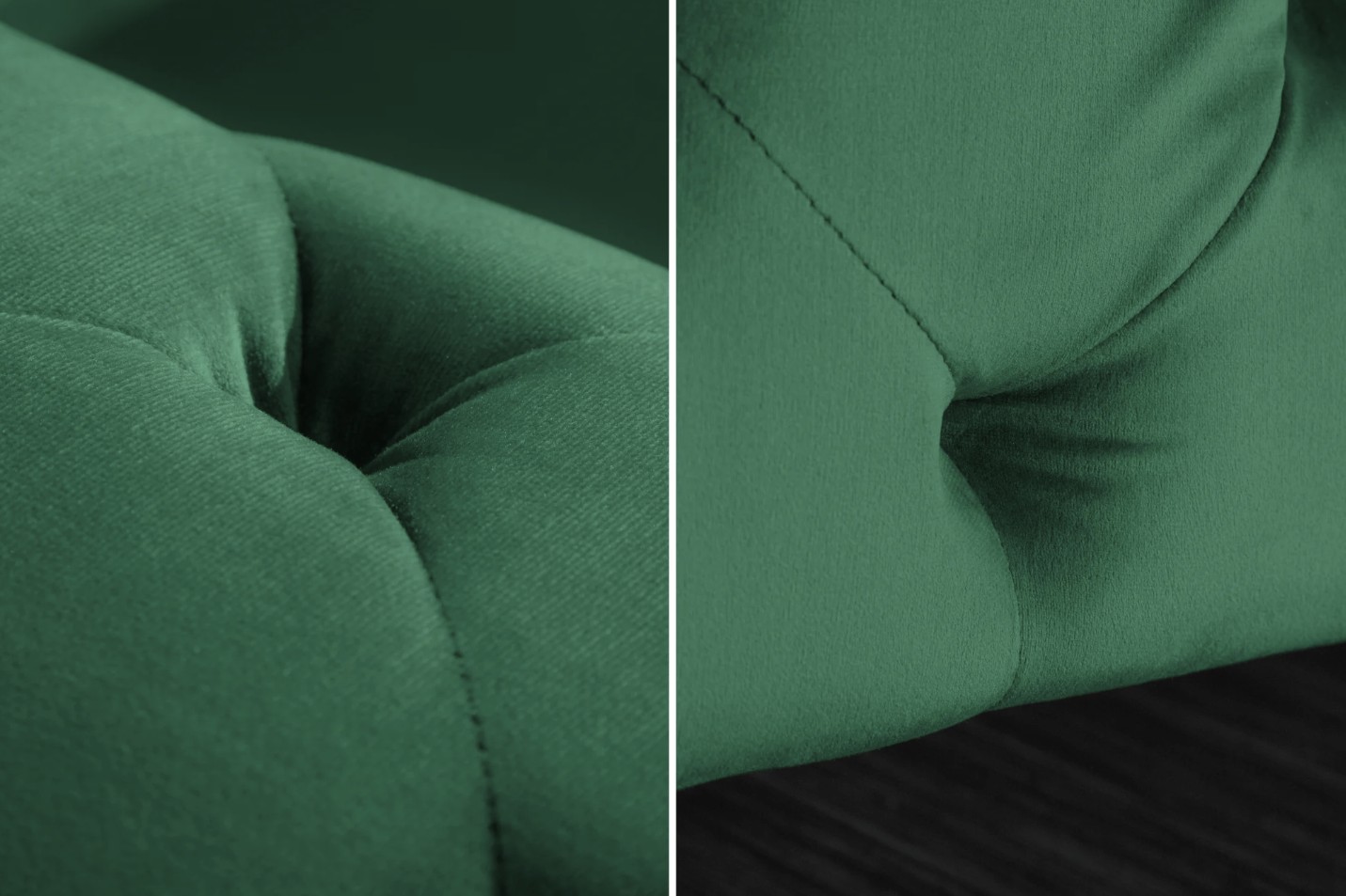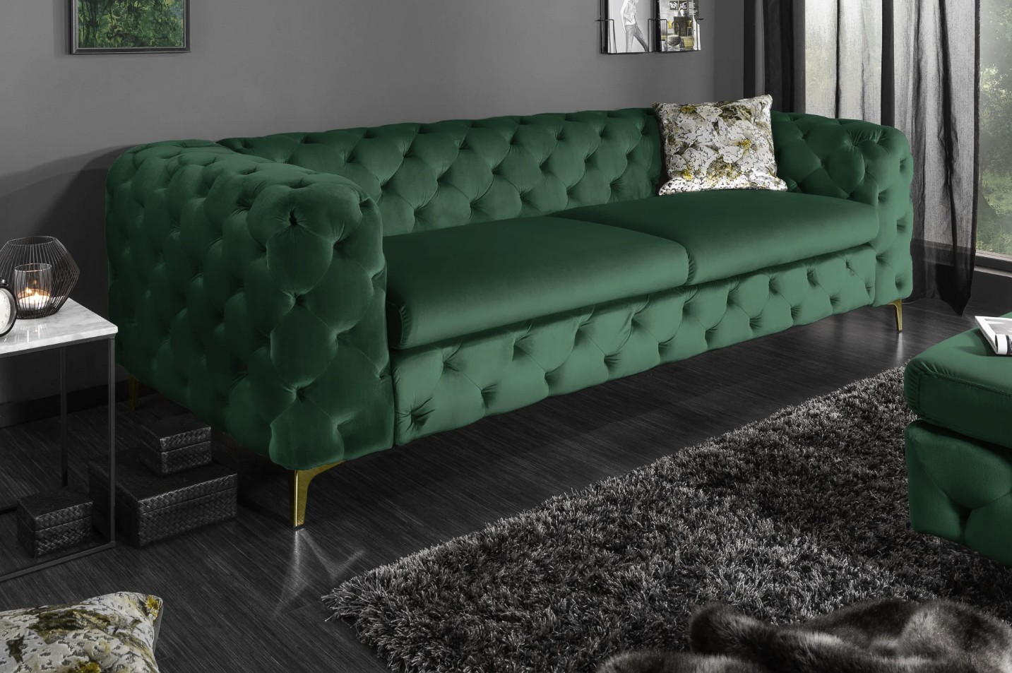 Le canapé droit VELENA en vert émeraude incarne un style baroque sophistiqué, idéal pour sublimer un salon avec une pièce forte et élégante. Son coloris profond et son design travaillé en font un élément central de votre décoration intérieure.