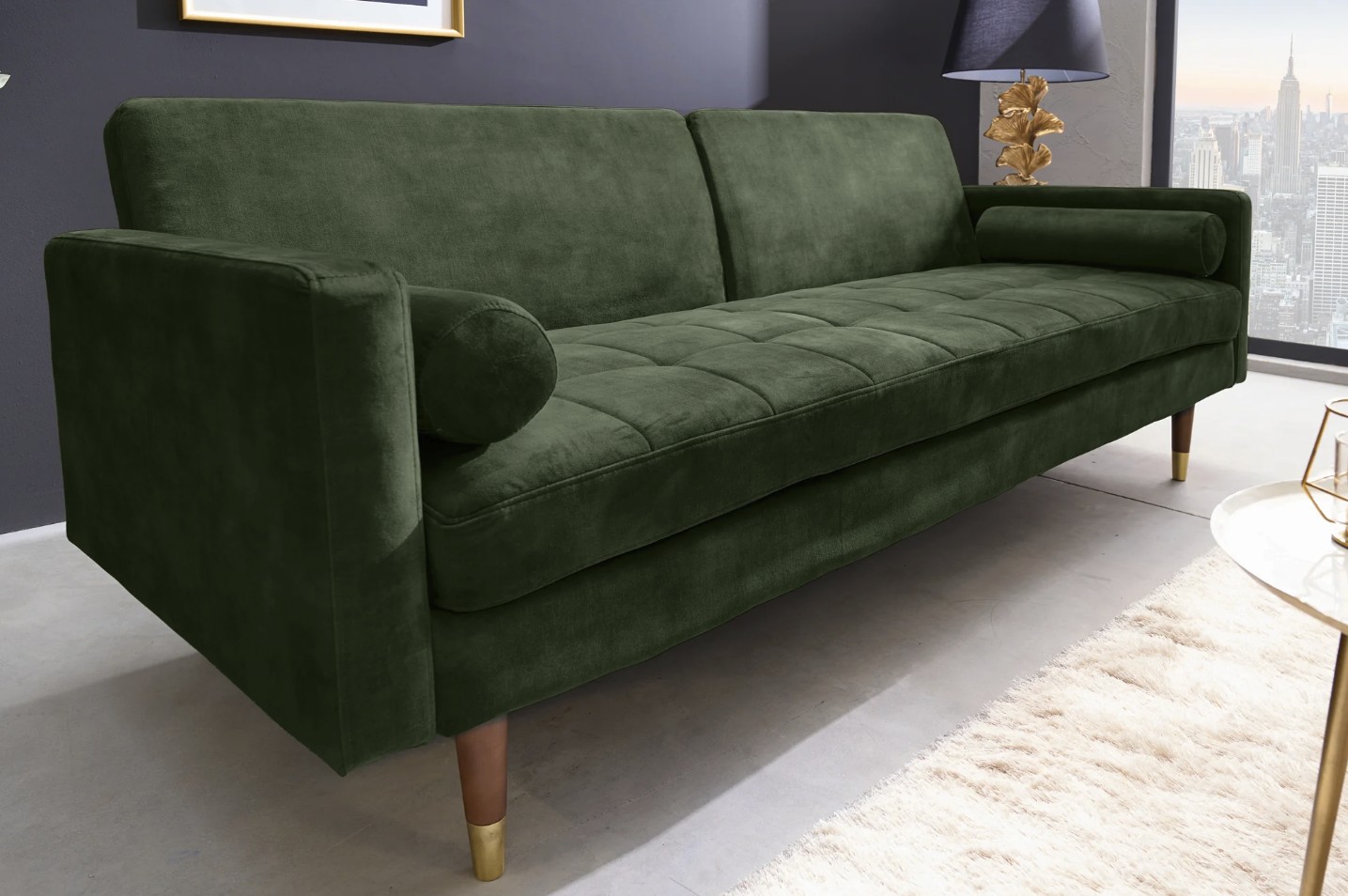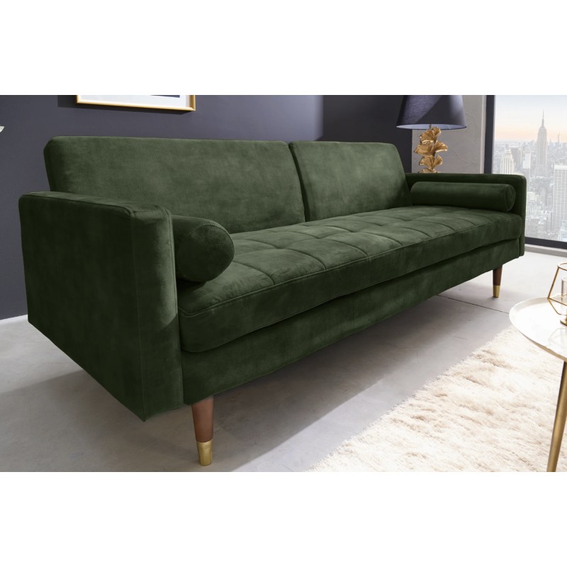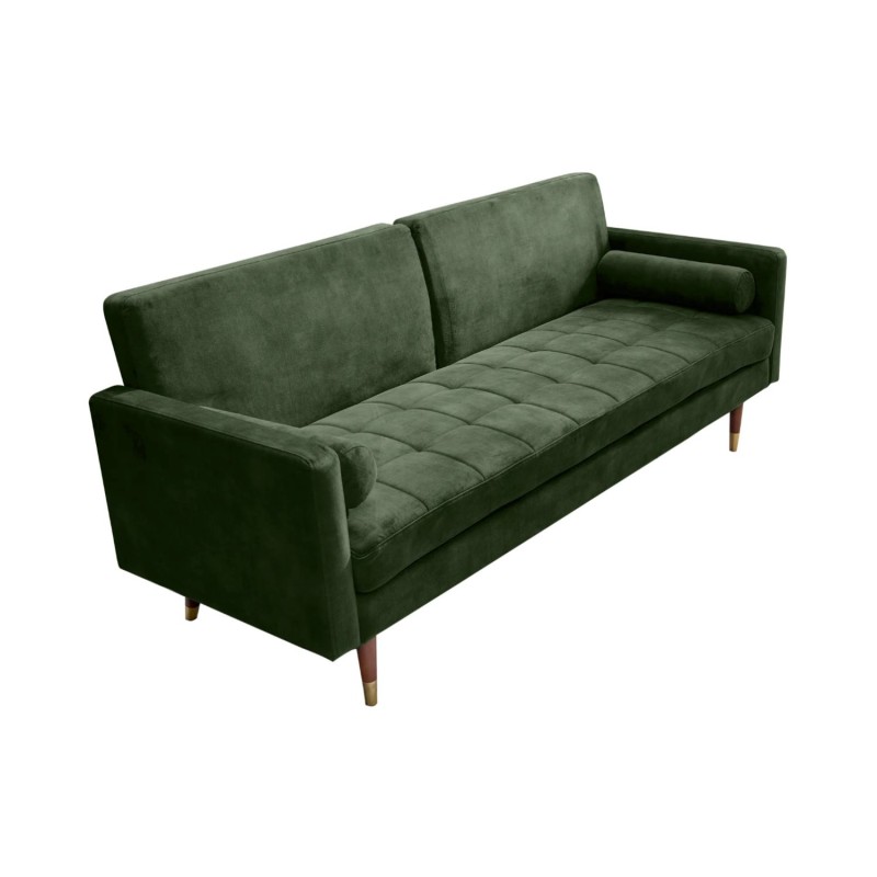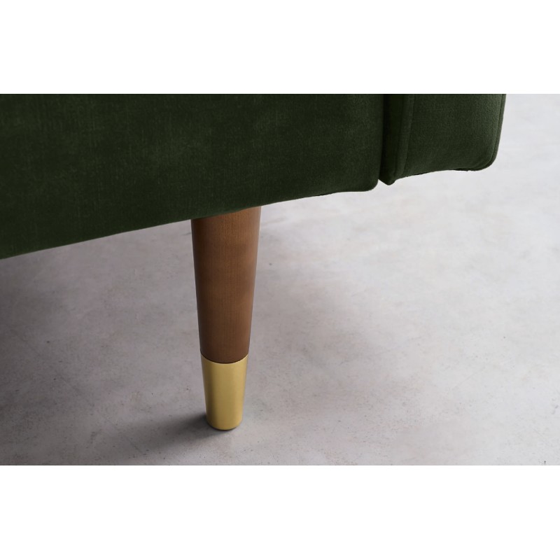 Ce canapé repose sur une structure en bois de bouleau, associée à des éléments en métal, garantissant solidité et stabilité au fil du temps. Son revêtement en velours 100 % polyester procure un toucher doux et agréable, tout en restant facile à entretenir. La finition aspect matelassé sur l’assise uniquement renforce son style design et améliore le confort lors de l’utilisation quotidienne.