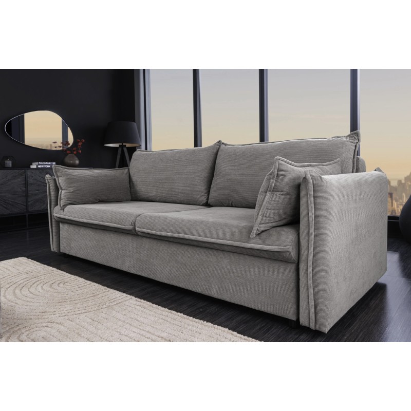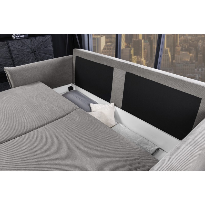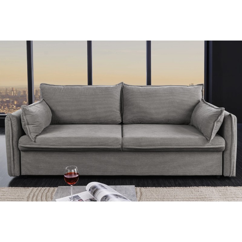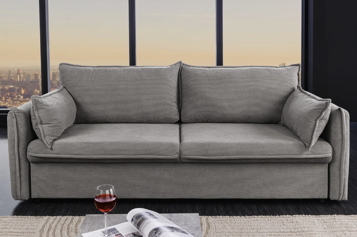 Le coffre de rangement intégré permet de stocker couettes, oreillers ou plaids en toute simplicité, tandis que le mécanisme de conversion transforme rapidement le canapé en un couchage spacieux et confortable.