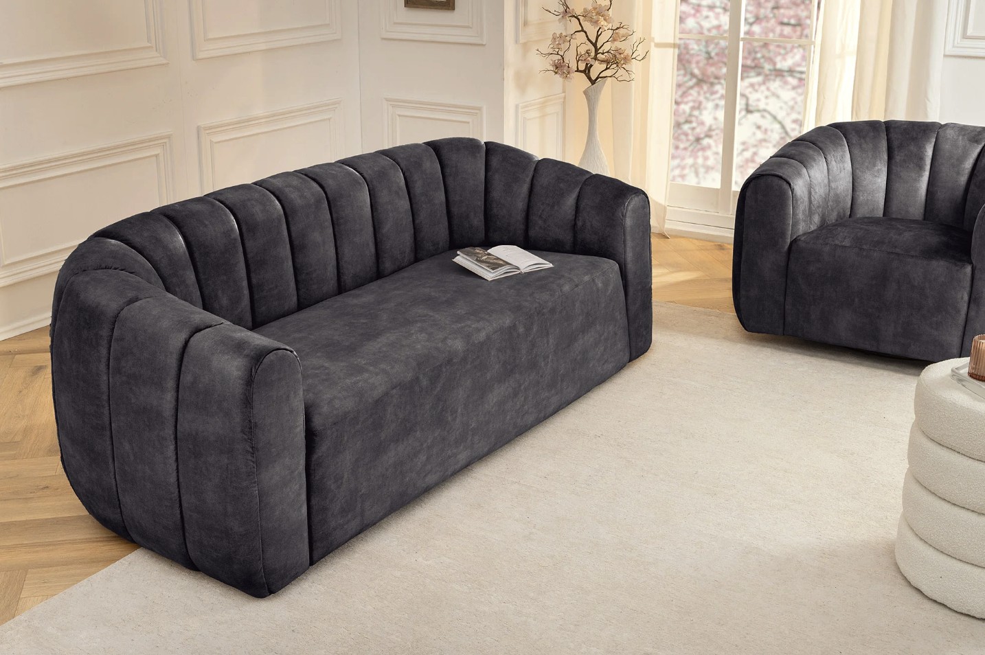 Le canapé droit MYSTRO en gris anthracite séduit par son style design sobre et indémodable, idéal pour structurer un salon contemporain avec élégance. Ses lignes équilibrées et son format compact en font un choix pertinent aussi bien pour les espaces de vie modernes que pour les intérieurs plus classiques.