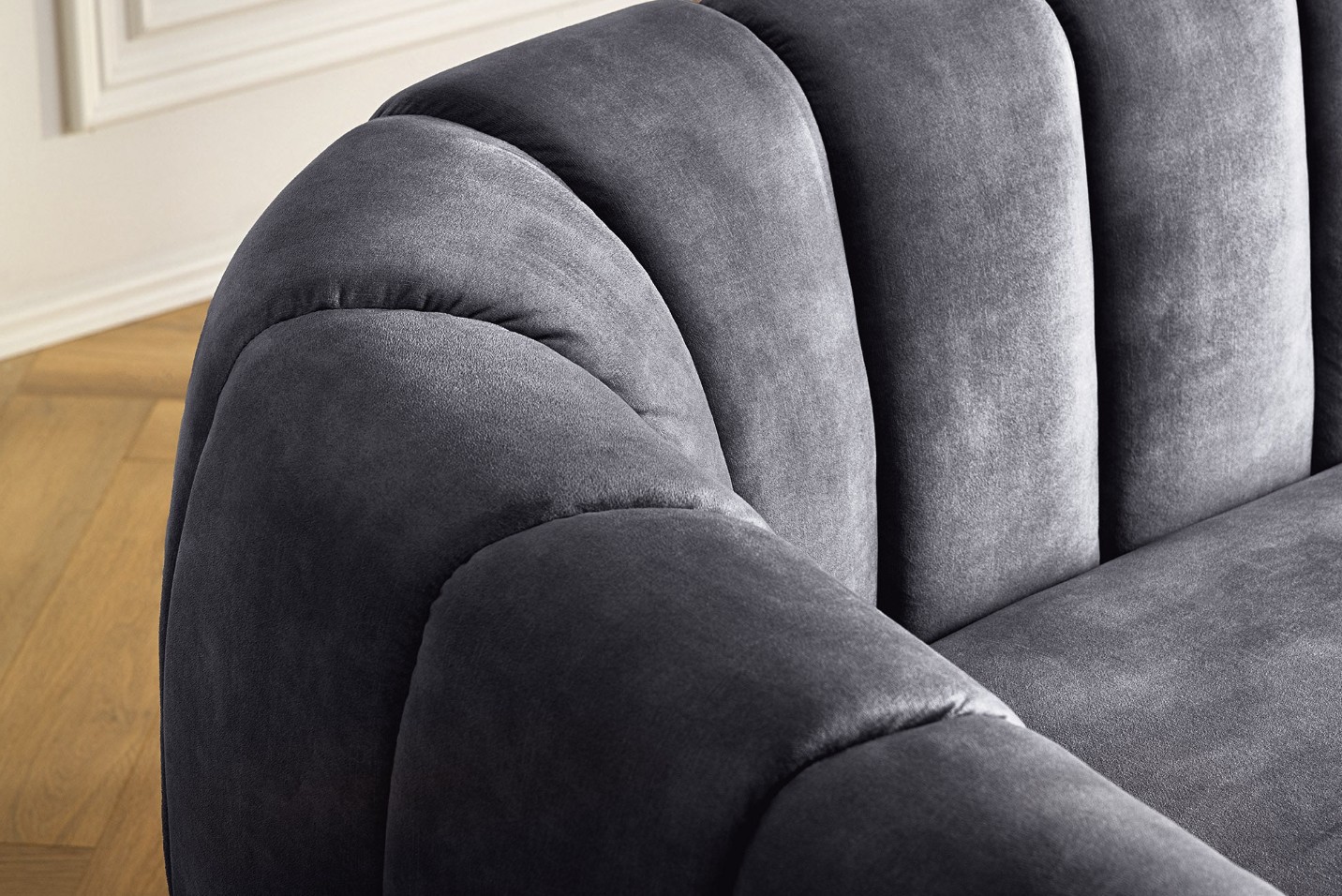 Reposant sur une structure en bois associée à un garnissage en mousse, ce canapé garantit une assise confortable et un bon maintien au quotidien. Son revêtement en velours 100 % polyester, au toucher doux, apporte une sensation agréable et une esthétique raffinée. Les accoudoirs intégrés renforcent le confort et l’ergonomie de l’ensemble.