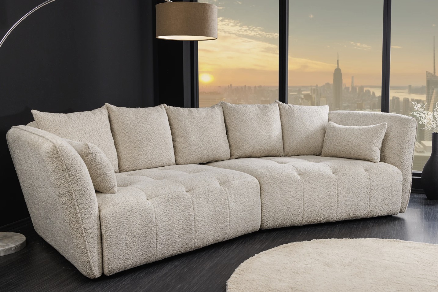 Entièrement déhoussable, le canapé IMPERIA facilite l’entretien au quotidien. Il est livré avec sept coussins assortis, dont cinq grands coussins carrés et deux coussins rectangulaires, renforçant le confort et l’esthétique cosy de l’ensemble.