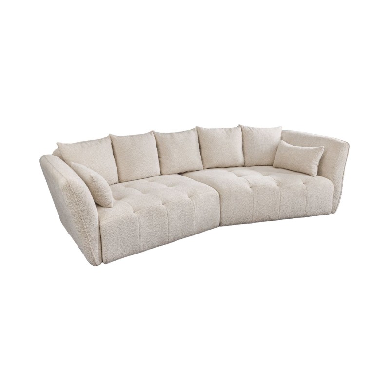Conçu avec une structure en bois associée à des ressorts, ce canapé garantit une excellente tenue dans le temps et un confort durable. Son revêtement en tissu bouclette, doux et texturé, apporte une sensation chaleureuse et tendance, parfaitement adaptée aux intérieurs contemporains comme classiques.