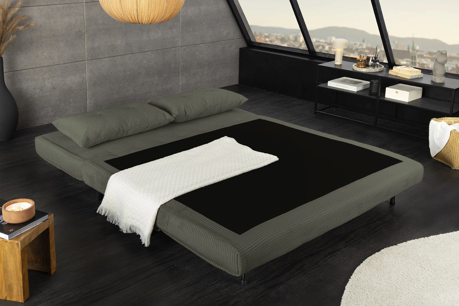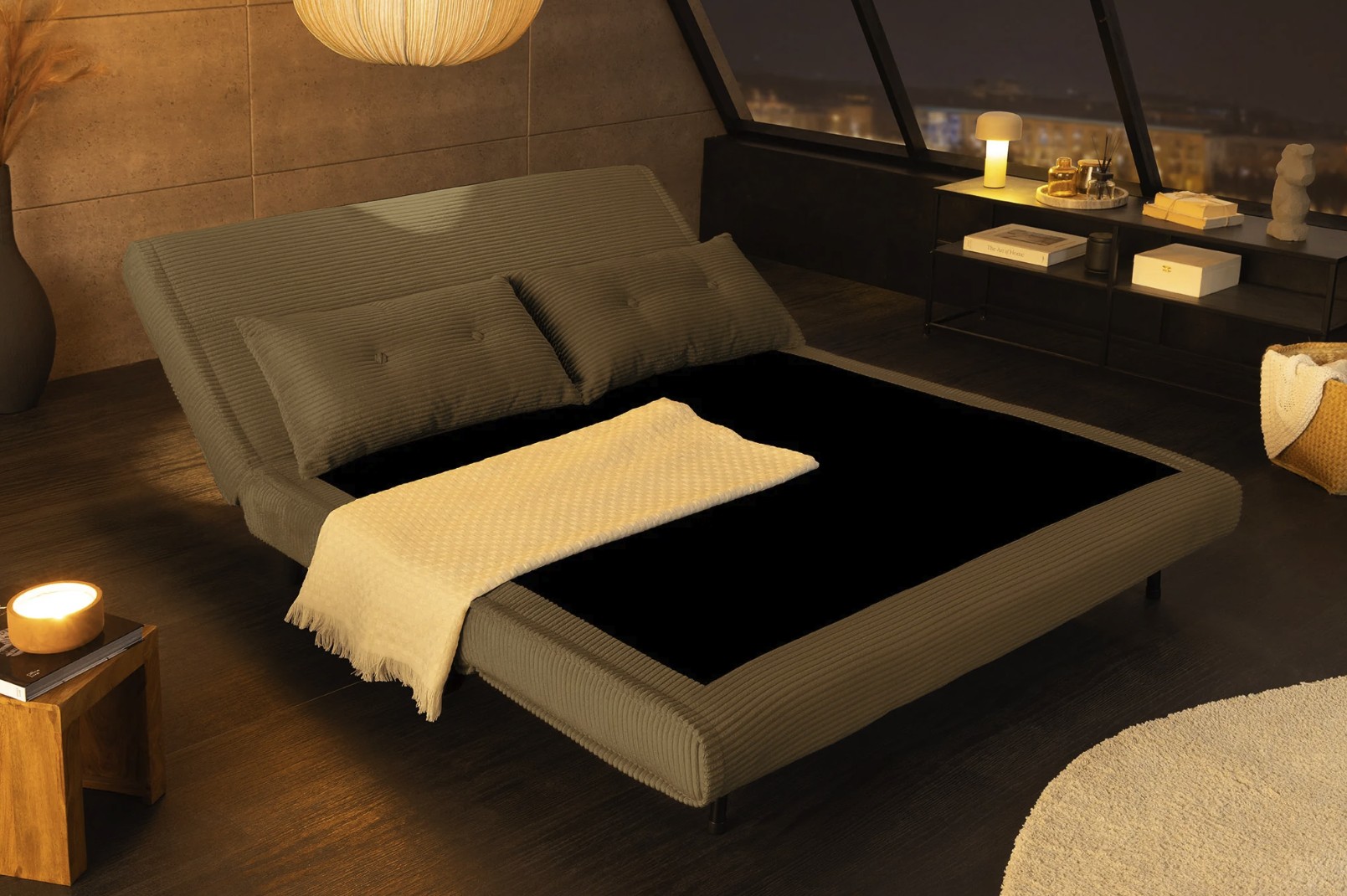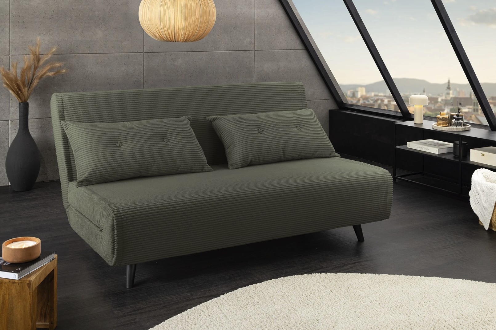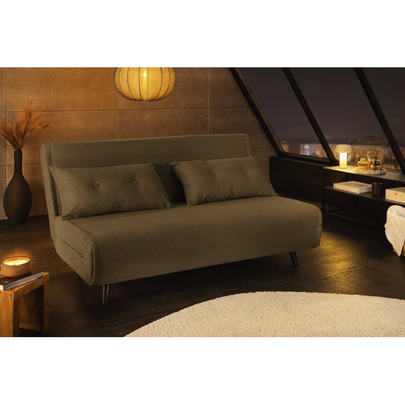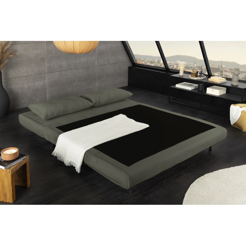 Équipé d’un système de conversion simple, ce canapé se transforme rapidement en lit pour offrir un couchage de 140 × 190 cm, idéal pour accueillir des invités. Son revêtement côtelé, composé de 90 % polyester et 10 % nylon, assure une bonne résistance et un toucher agréable.