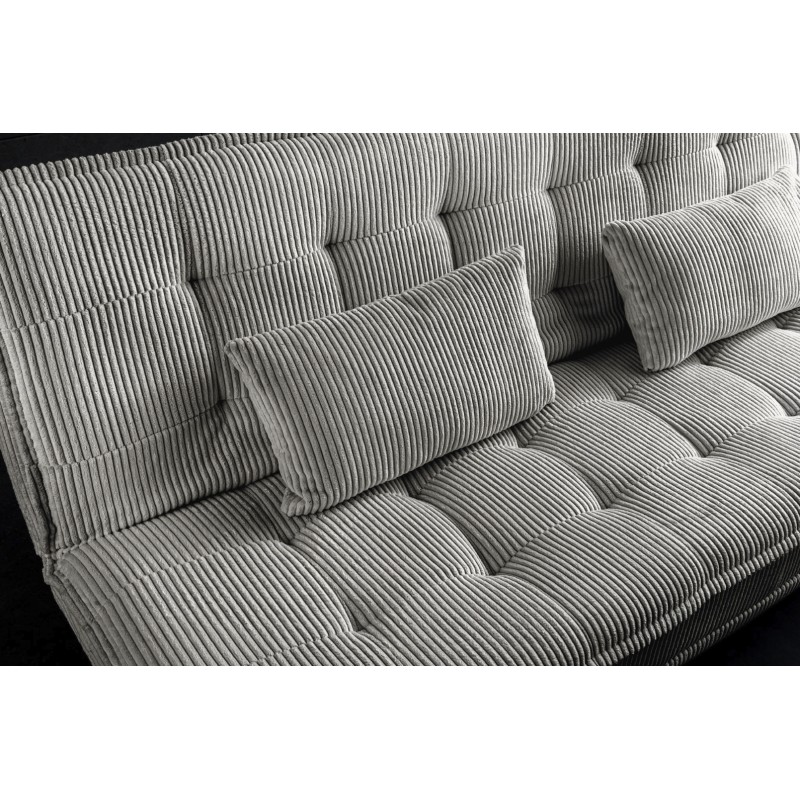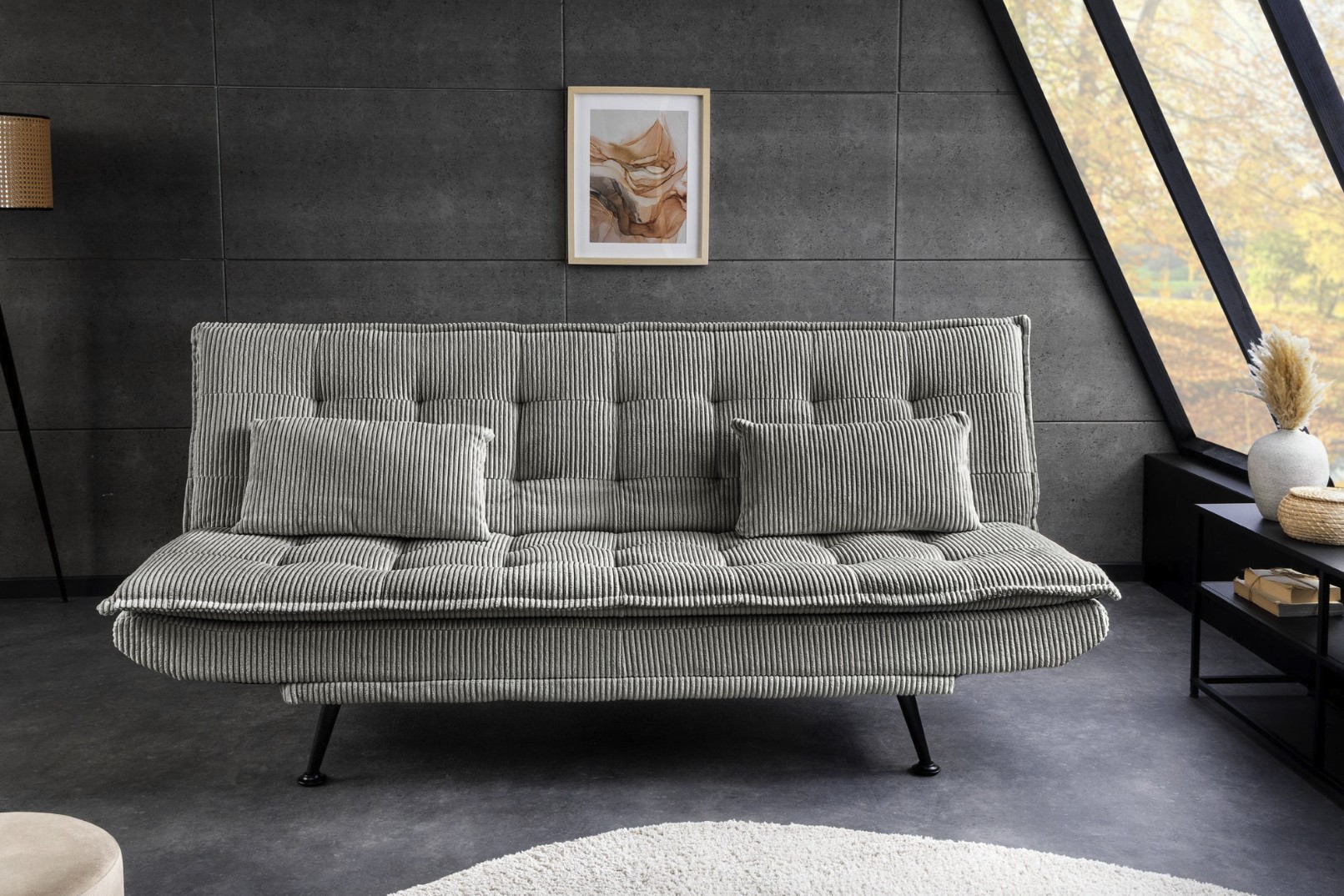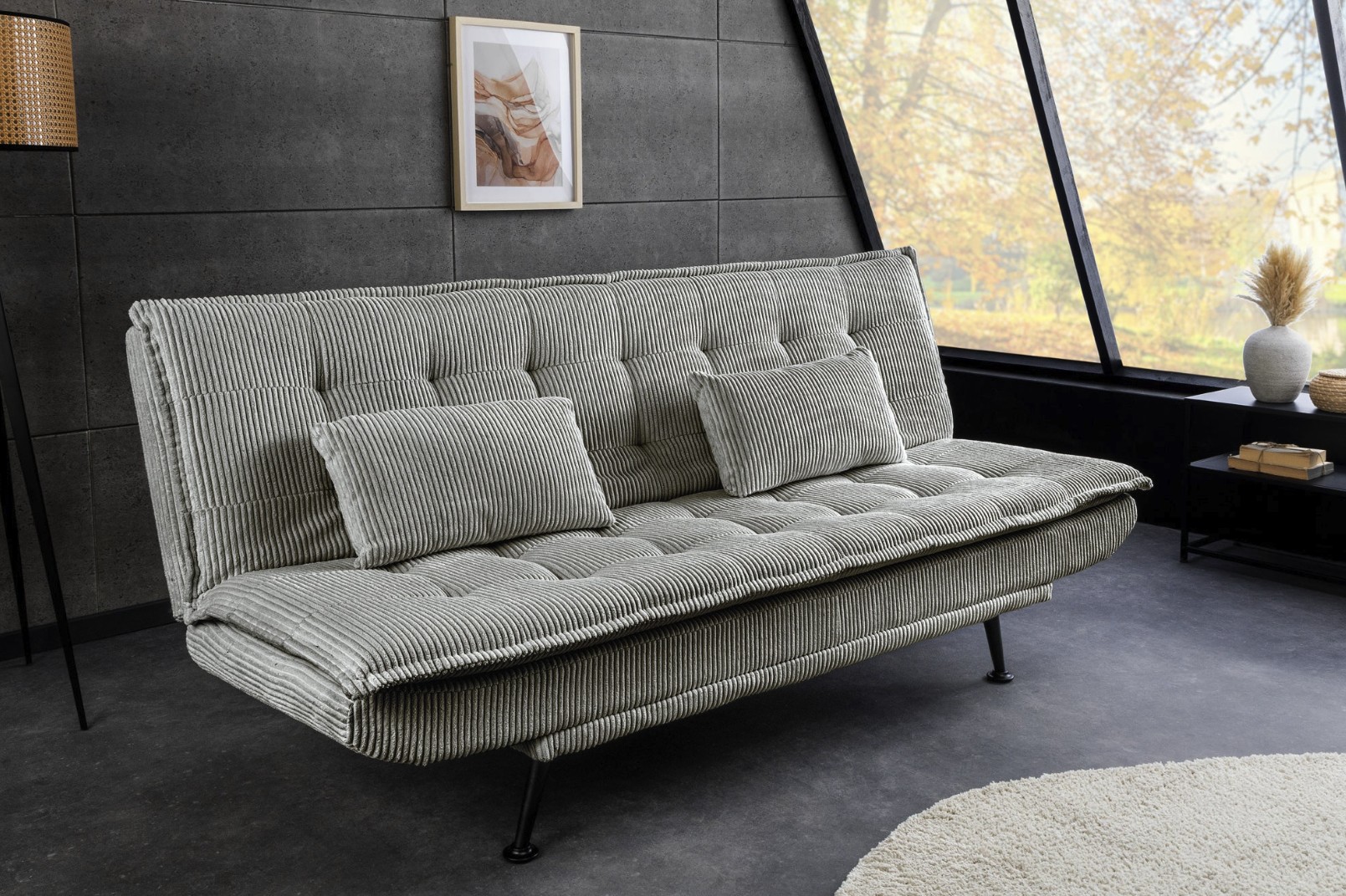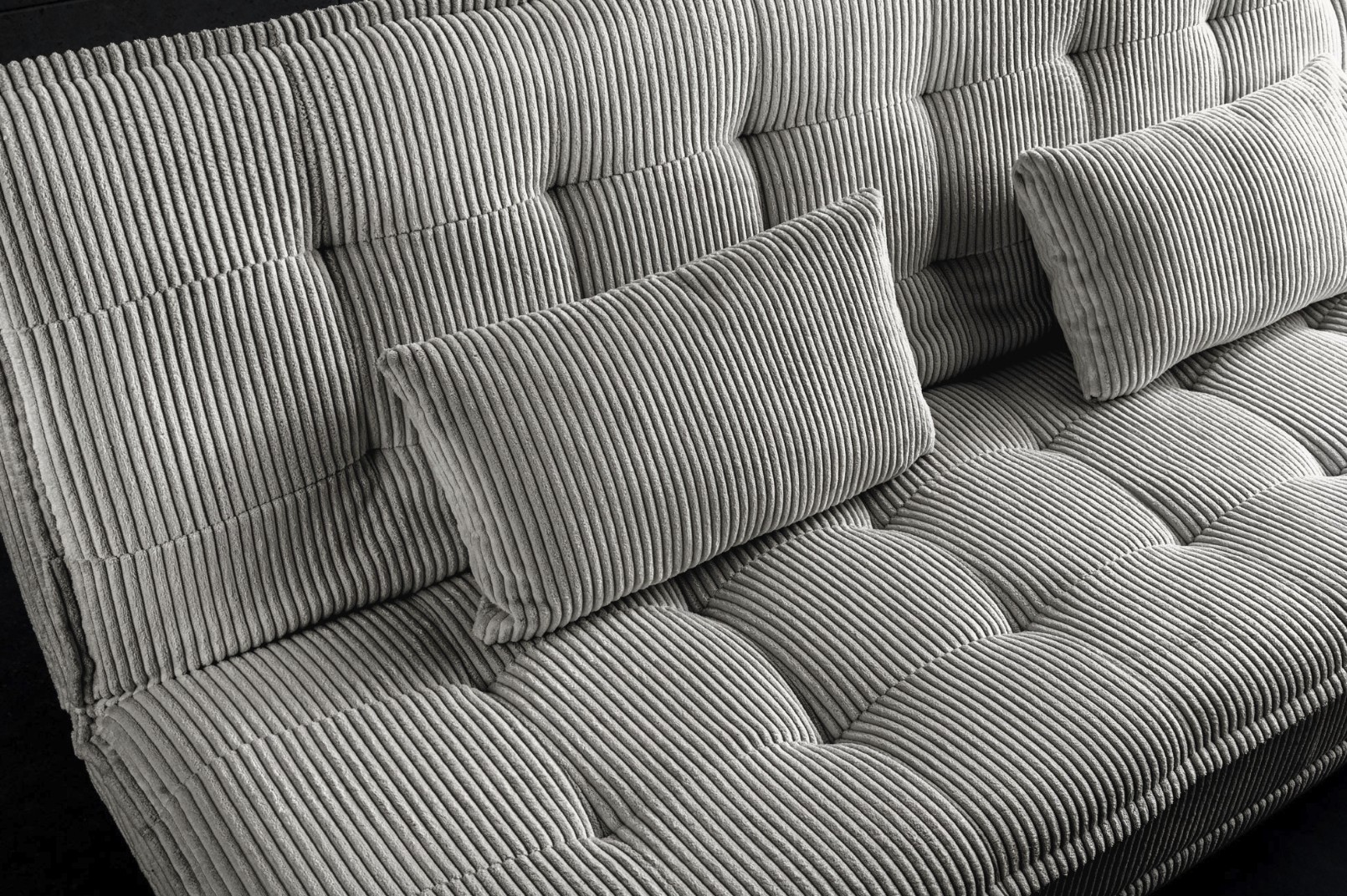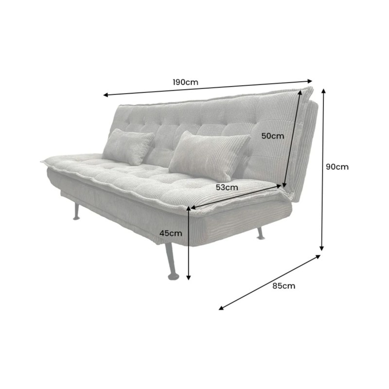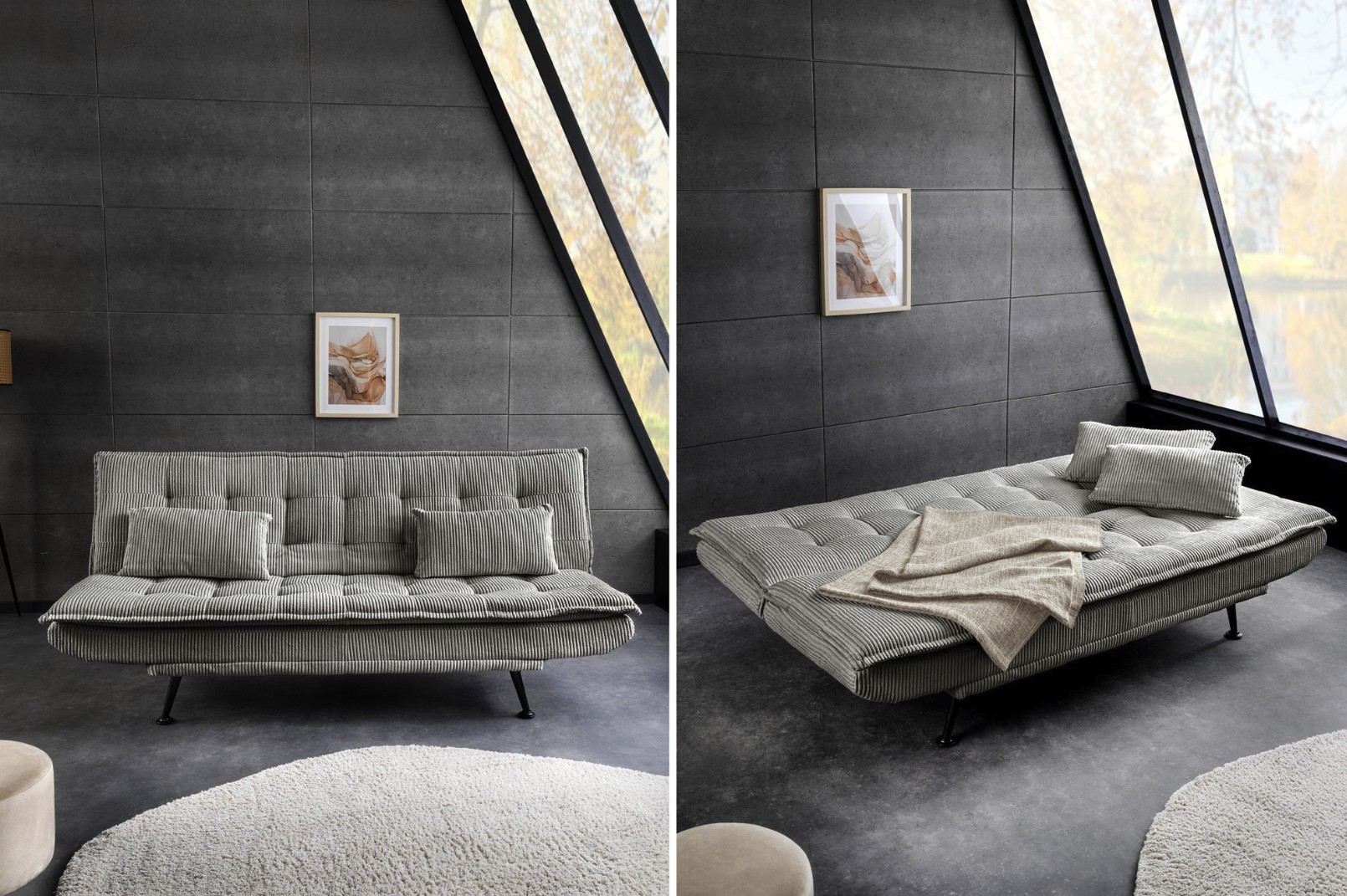 Grâce à son système de conversion simple, ce canapé se transforme rapidement en lit offrant un couchage de 110 × 190 cm, parfait pour un couchage d’appoint. Son revêtement en velours côtelé apporte une texture chaleureuse et tendance, tout en restant agréable au toucher.