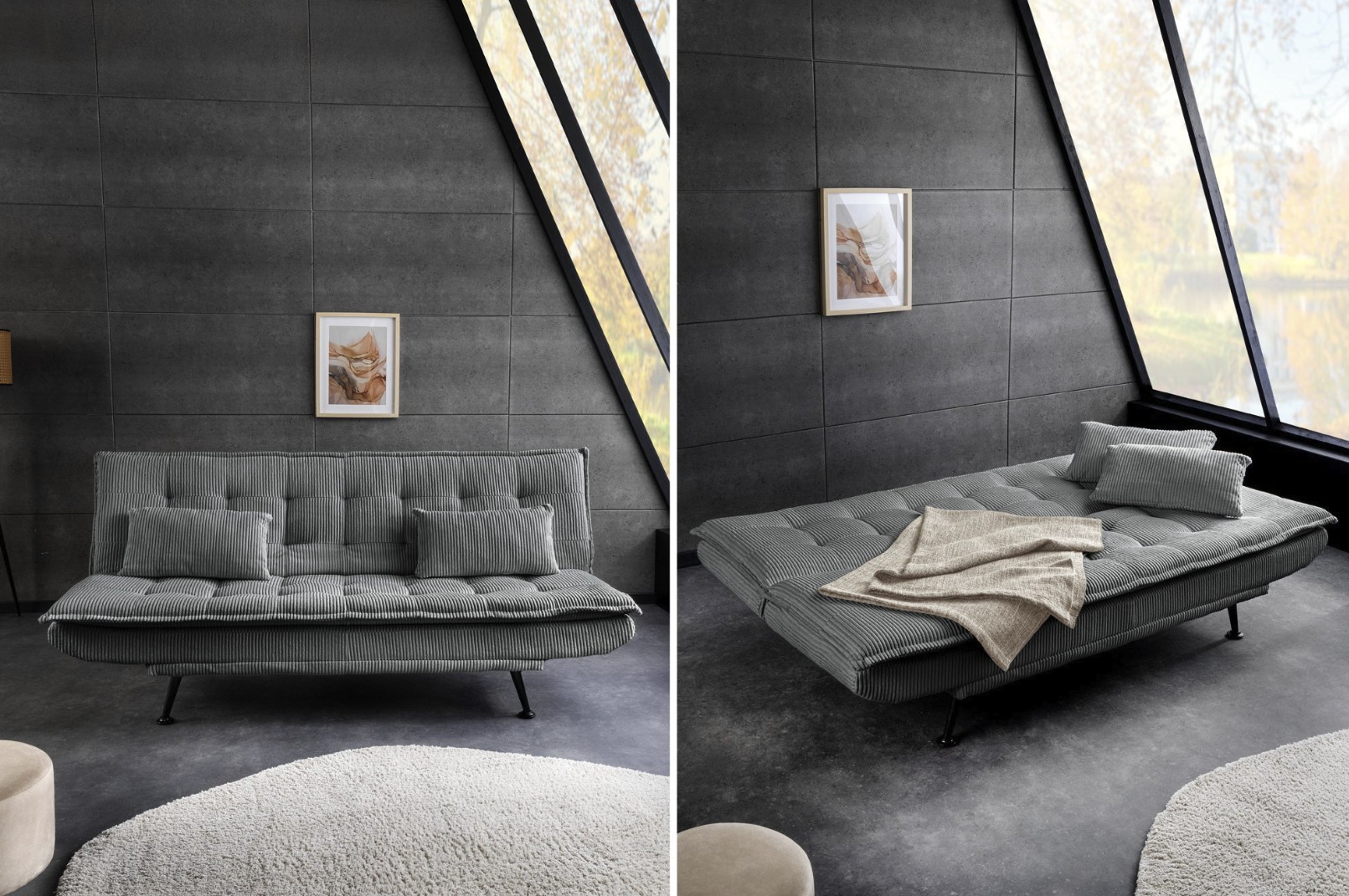 Grâce à son système de conversion simple, ce canapé se transforme rapidement en lit d’appoint avec un couchage de 110 × 190 cm. Une solution idéale pour accueillir des invités ou optimiser l’espace dans un studio ou une pièce multifonction.