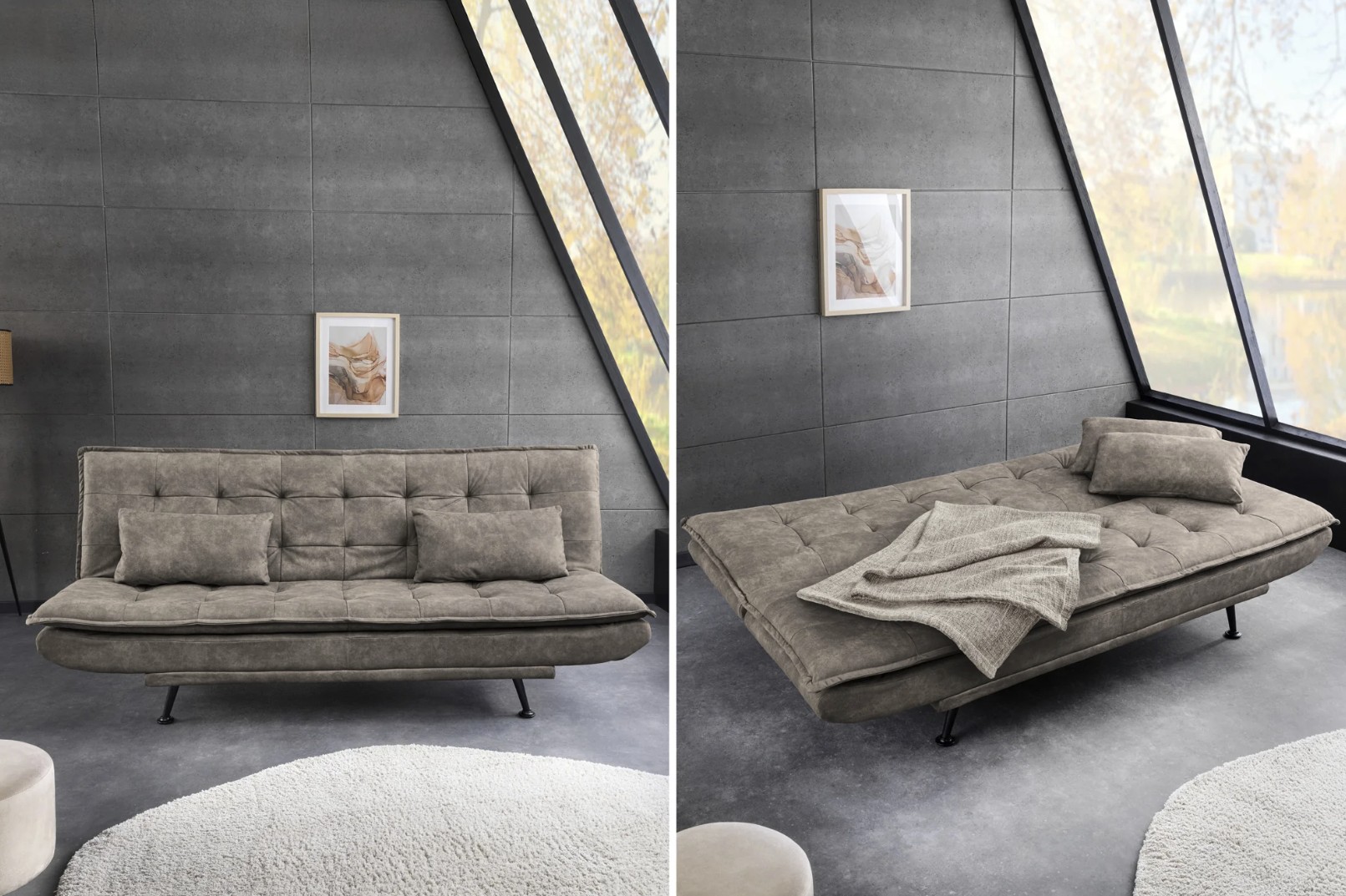 Le canapé droit SERENO en coloris taupe apporte une touche chaleureuse et apaisante à votre intérieur. Son design contemporain associé à une fonction convertible en fait une solution idéale pour les espaces de vie polyvalents, sans compromis sur le style.