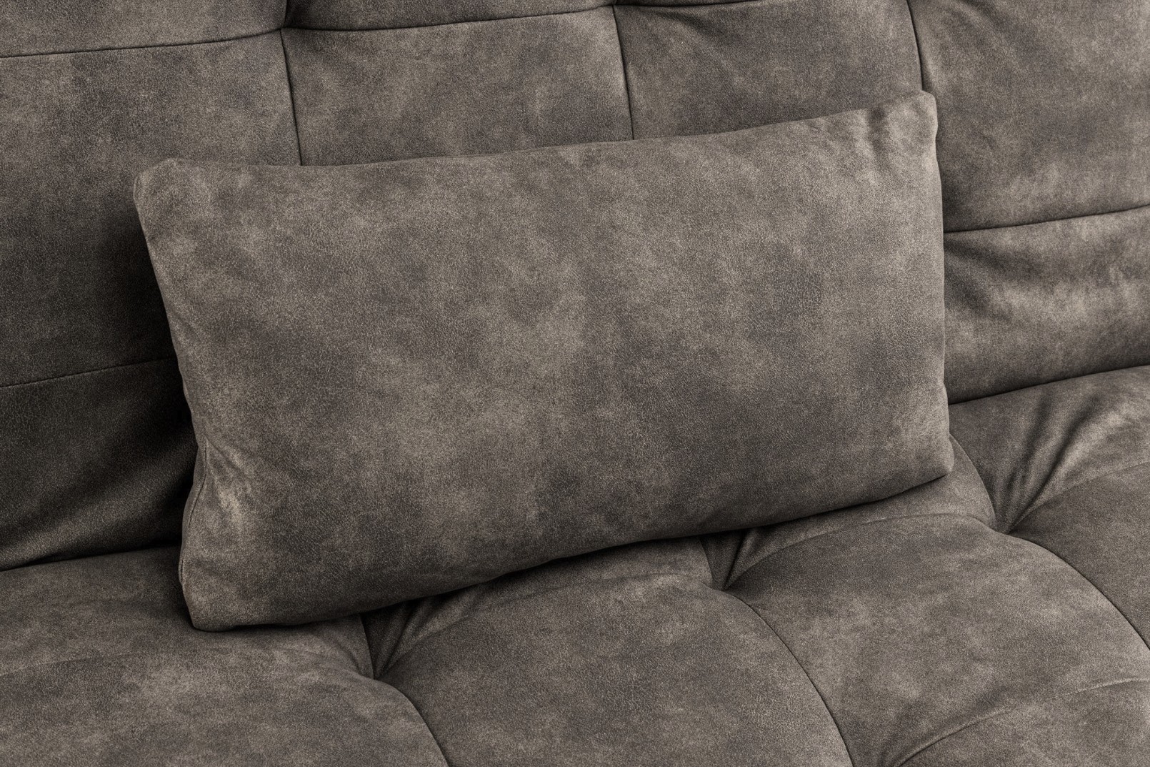 Son revêtement en microfibre séduit par son toucher doux et son entretien facile. La finition aspect matelassé structure visuellement l’assise et le dossier, tandis que le garnissage en mousse garantit un confort agréable. La structure en bois de pin, associée à des pieds en métal noir, assure stabilité et durabilité.