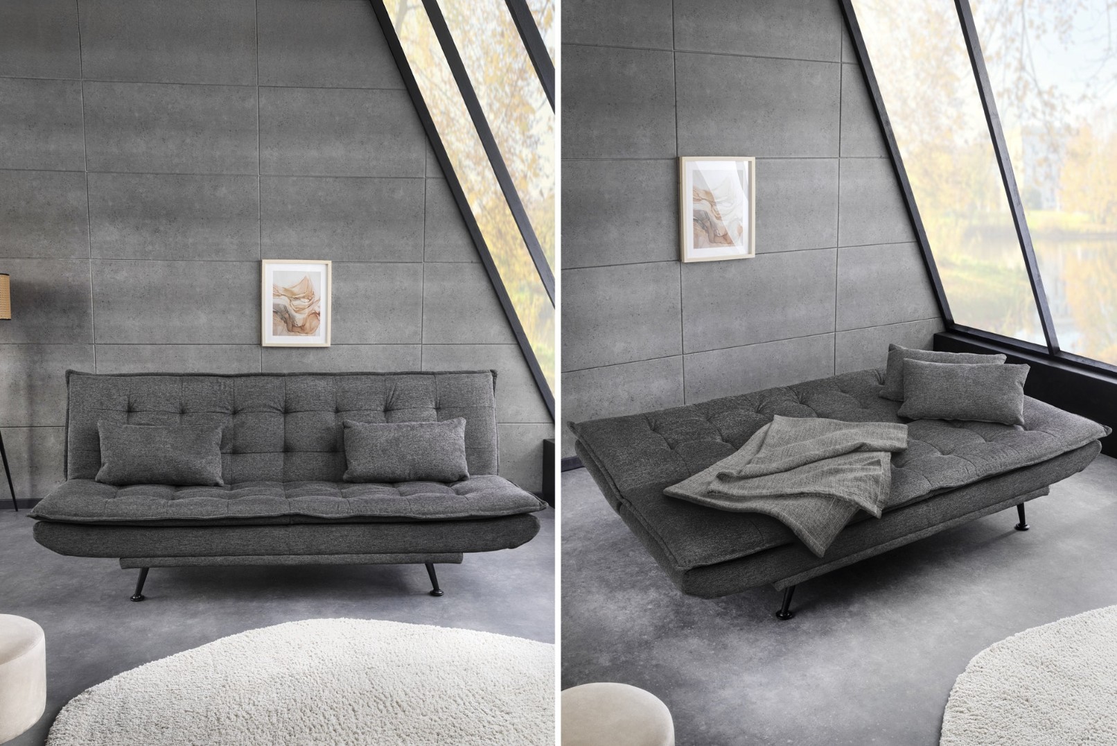 Doté d’un mécanisme simple et rapide, le canapé SERENO se transforme aisément en canapé-lit. Il propose un couchage de 110 × 190 cm, idéal pour un couchage d’appoint confortable ou un usage occasionnel dans un espace réduit.