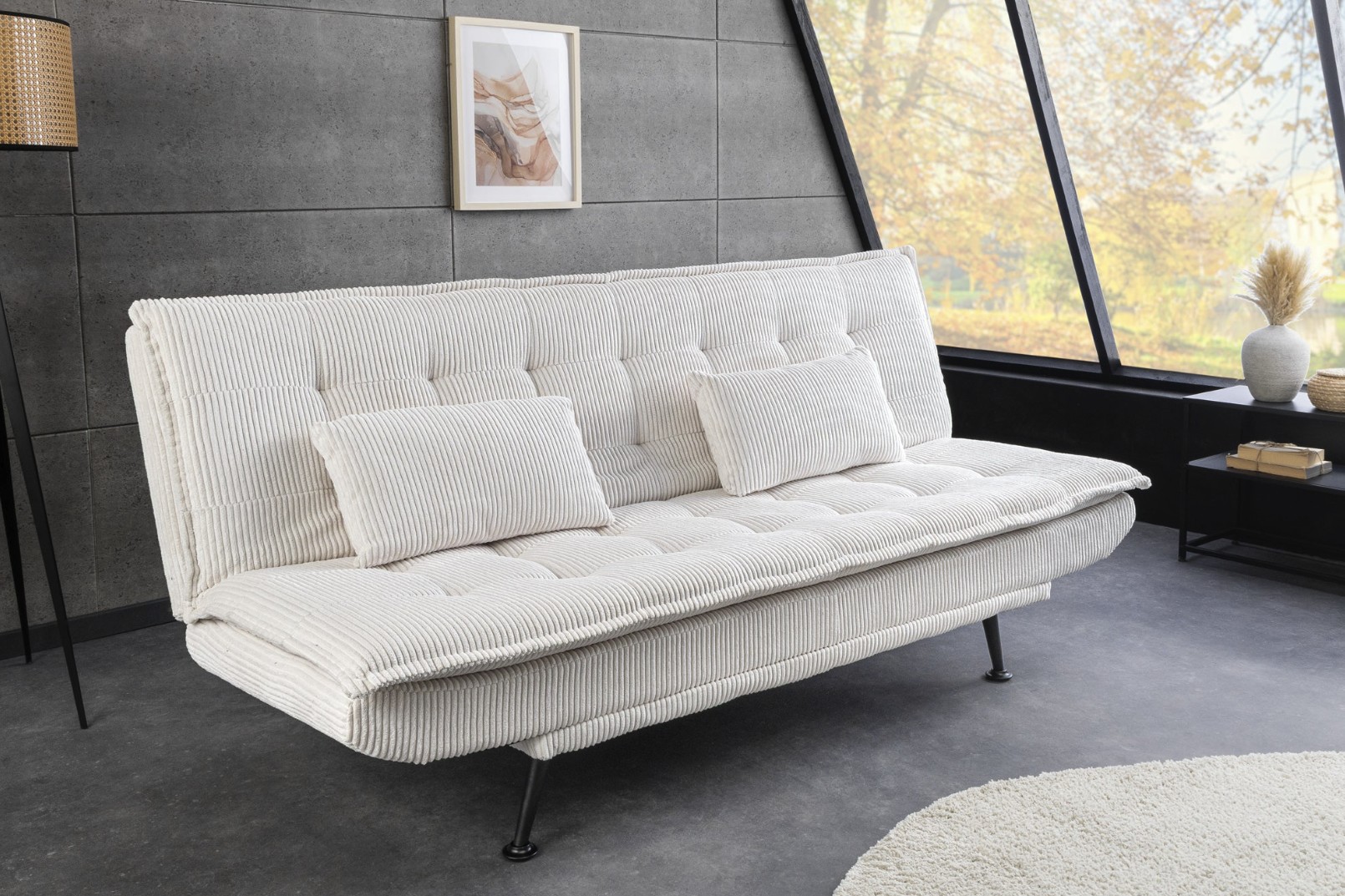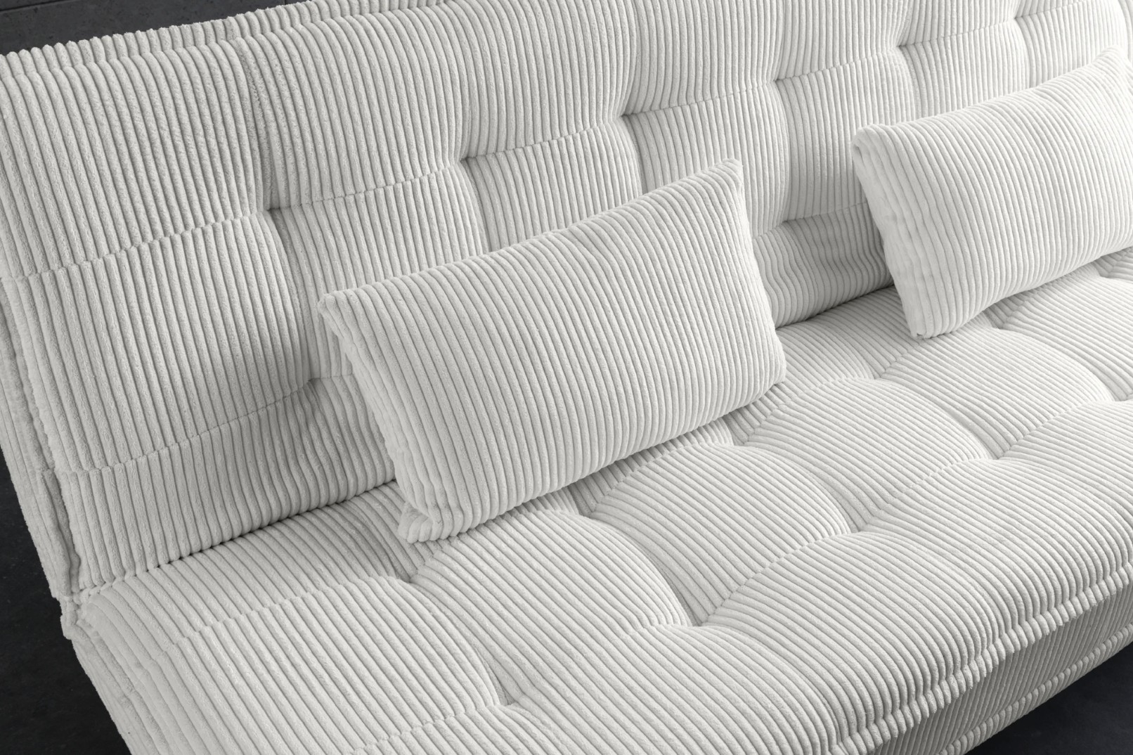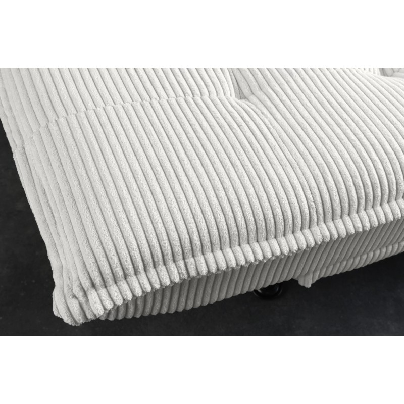 Le canapé droit SERENO en blanc séduit par son revêtement en velours côtelé, à la fois doux au toucher et visuellement structuré. Sa teinte claire apporte de la luminosité à la pièce, idéale pour agrandir visuellement les espaces de vie modernes ou minimalistes.