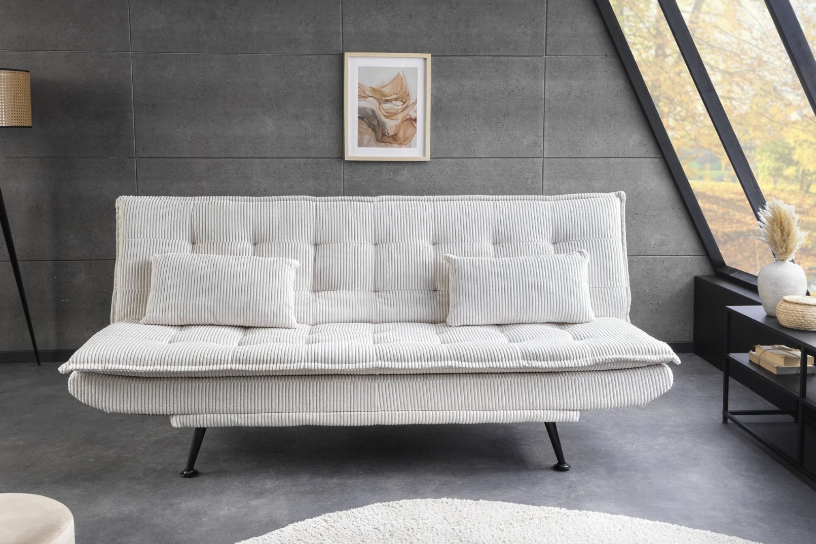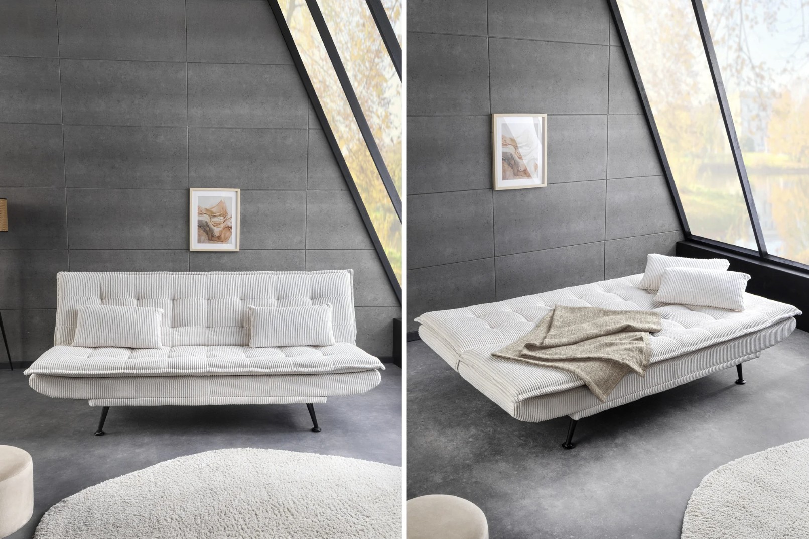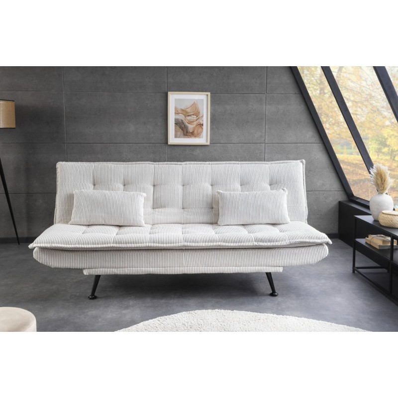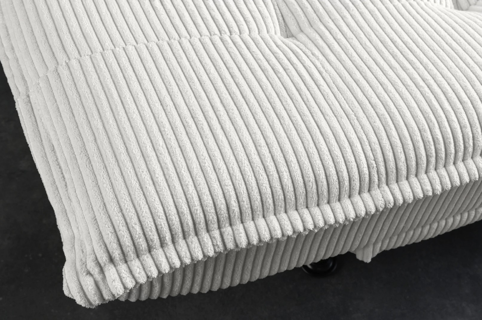L’assise garnie de mousse assure un confort homogène aussi bien en position assise qu’en position couchée. La finition côtelée renforce le caractère décoratif du canapé tout en conservant une allure sobre et contemporaine.