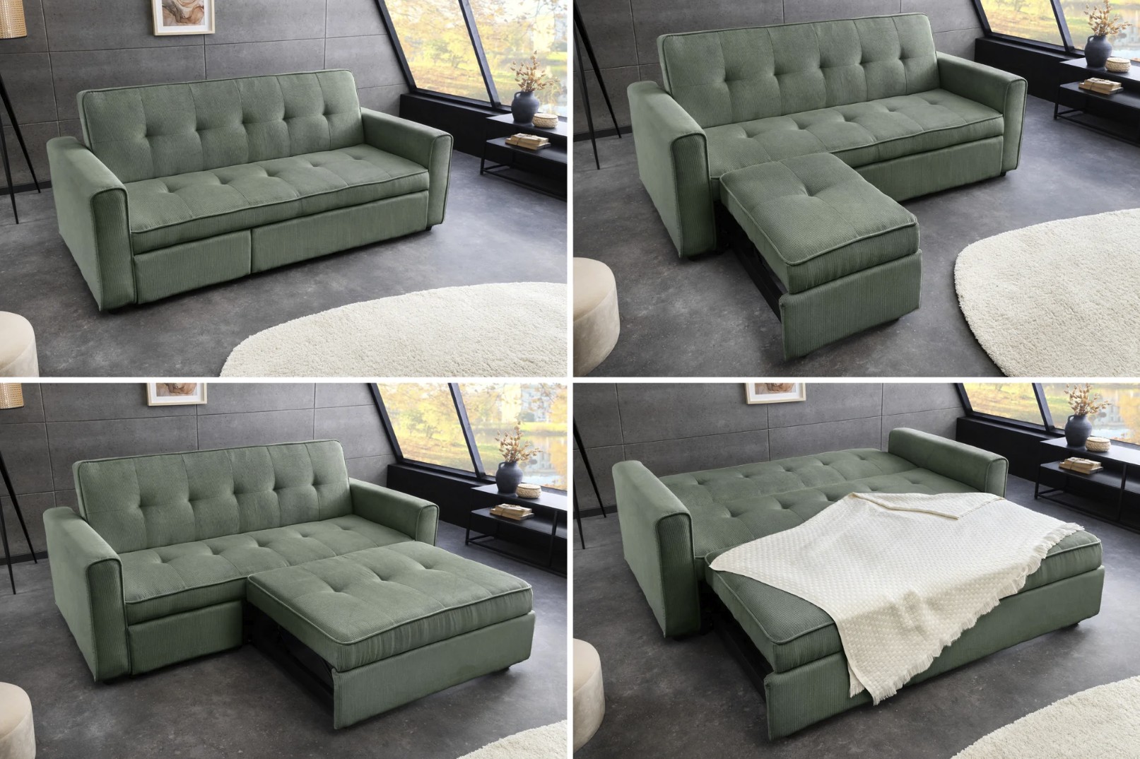 Grâce à ses extensions coulissantes situées de chaque côté, le canapé ROULY se transforme facilement. Tirez une extension pour créer un canapé d’angle à droite ou gauche, ou déployez les deux pour obtenir un canapé convertible en lit. Les roulettes intégrées assurent une manipulation fluide et rapide.