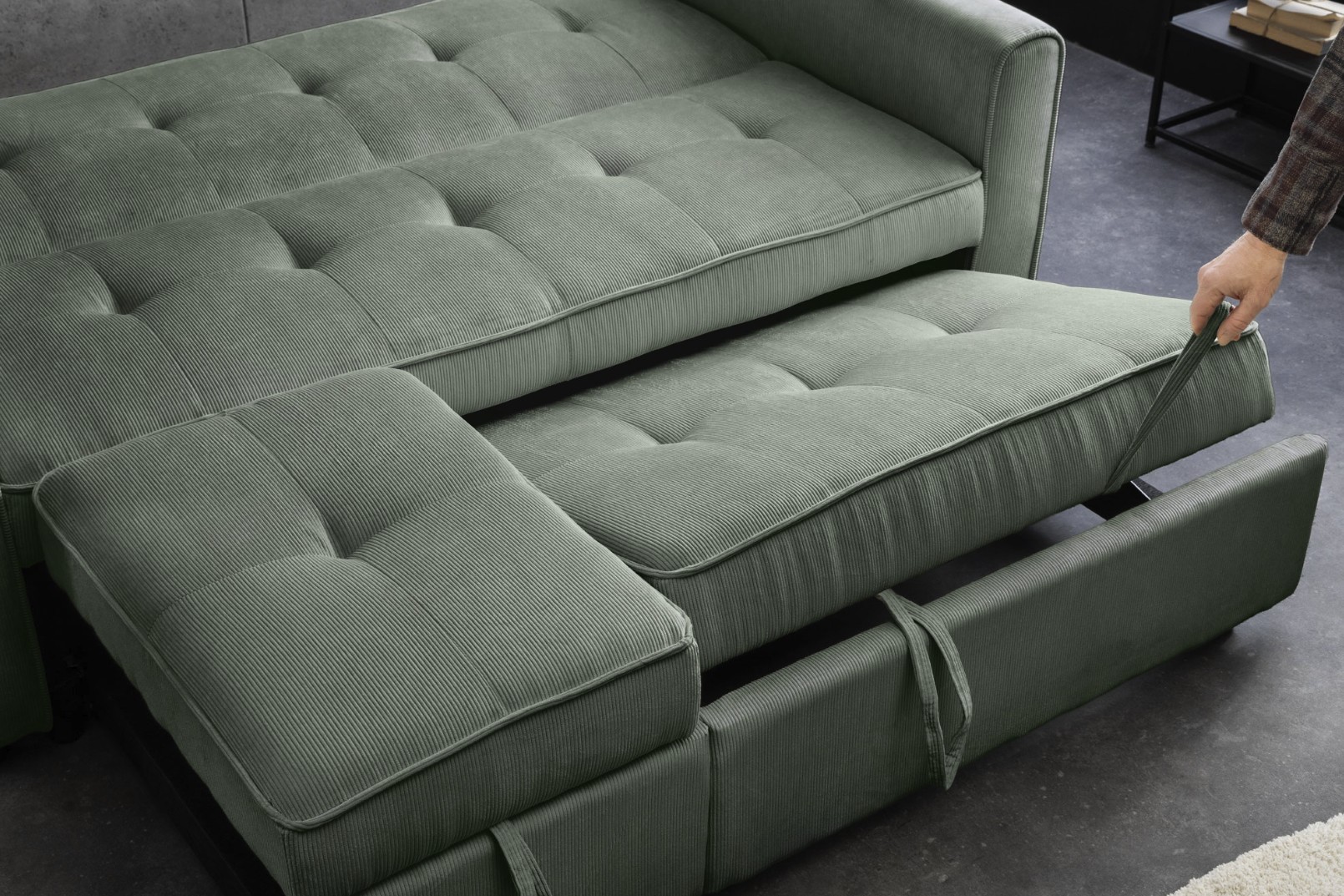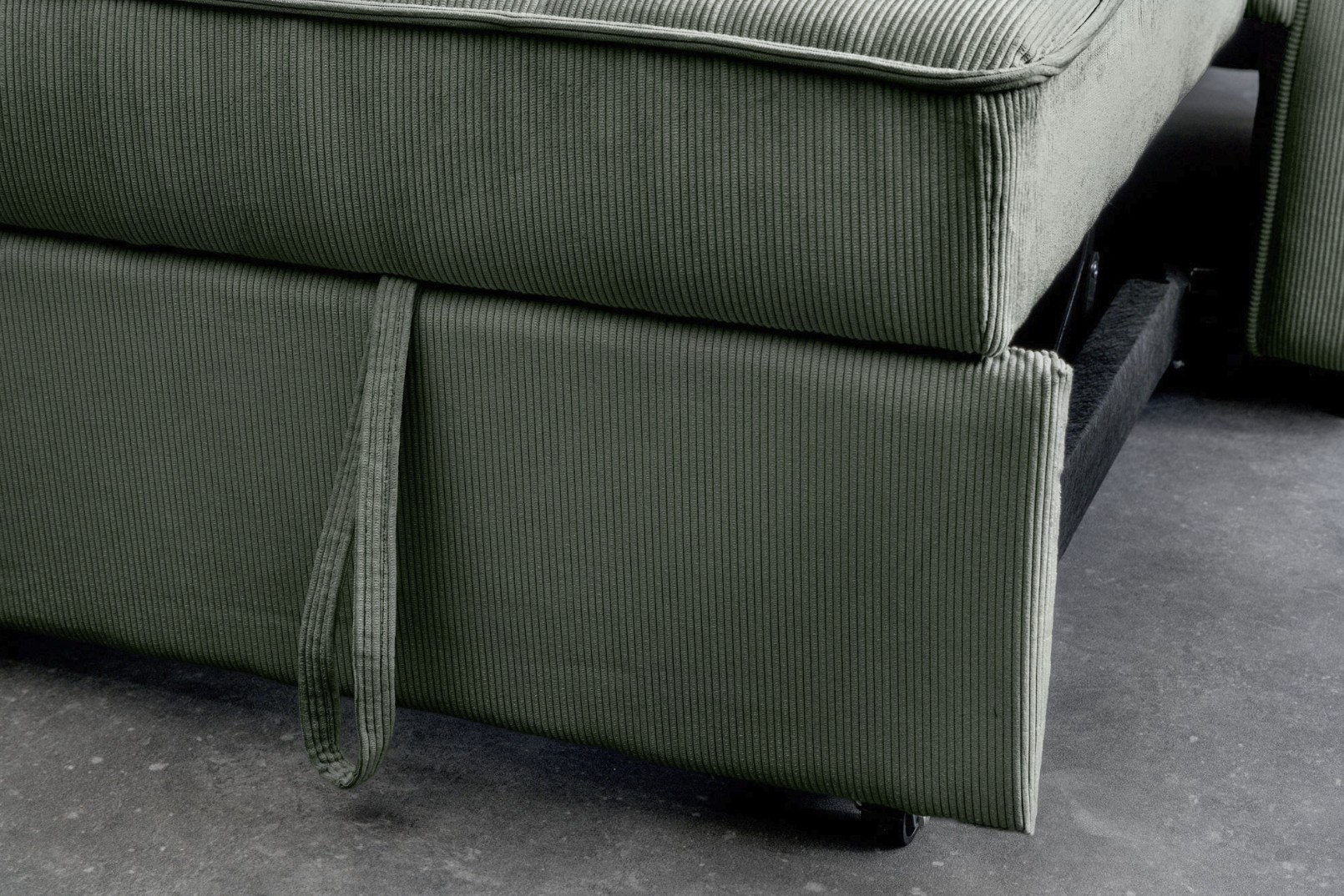 Le canapé ROULY en velours côtelé vert apporte une touche naturelle et élégante à votre salon. Son coloris profond s’intègre aussi bien dans une décoration contemporaine que classique, tout en offrant une solution d’assise polyvalente et évolutive.