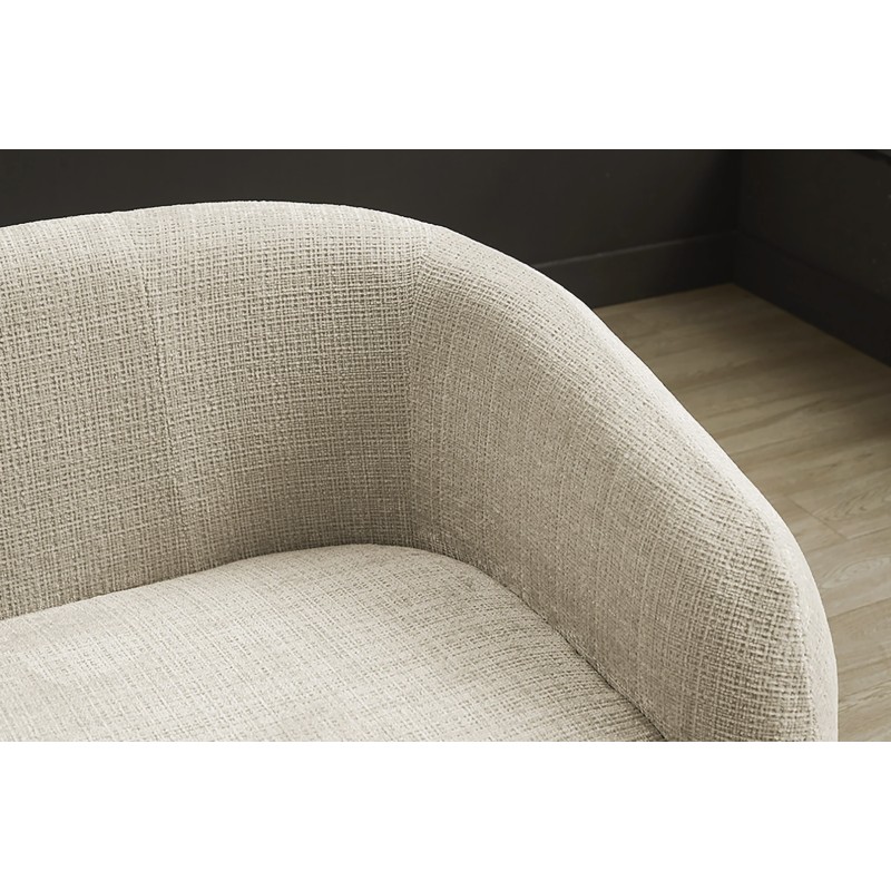 Conçu avec une structure robuste en bois associée à une mousse de qualité, ce canapé garantit une assise confortable au quotidien. Son revêtement en tissu chenille présente un aspect côtelé horizontal le long du dossier et des accoudoirs, renforçant son caractère graphique et contemporain. Les accoudoirs intégrés offrent un excellent maintien pour un confort optimal.