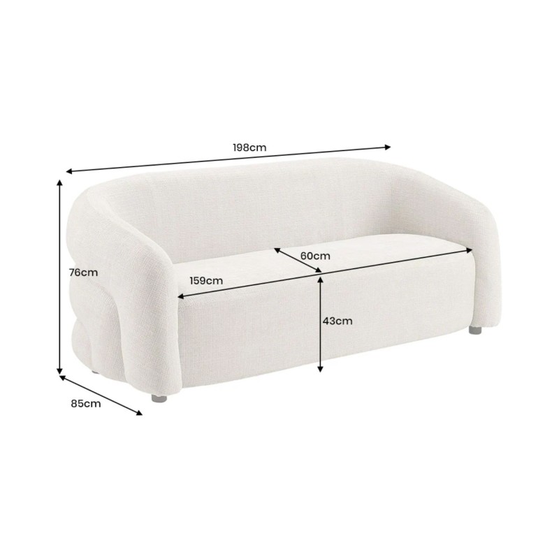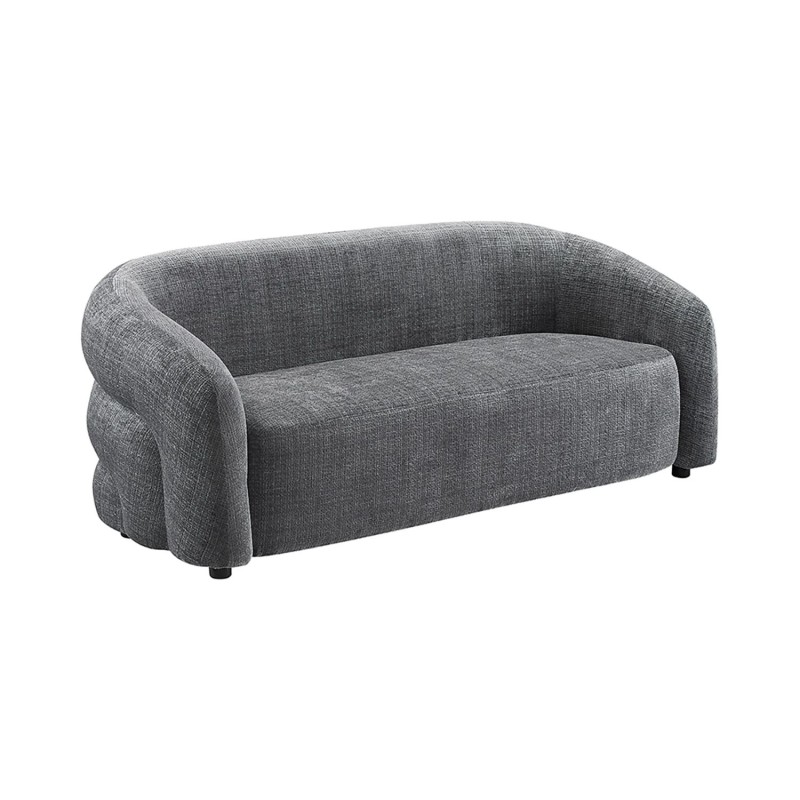 Reposant sur une structure robuste en bois associée à une mousse de qualité, ce canapé garantit une assise agréable et durable. Son revêtement en tissu chenille est sublimé par une finition côtelée horizontale le long du dossier et des accoudoirs, apportant une touche graphique subtile et raffinée. Les accoudoirs intégrés renforcent le confort et le maintien au quotidien.