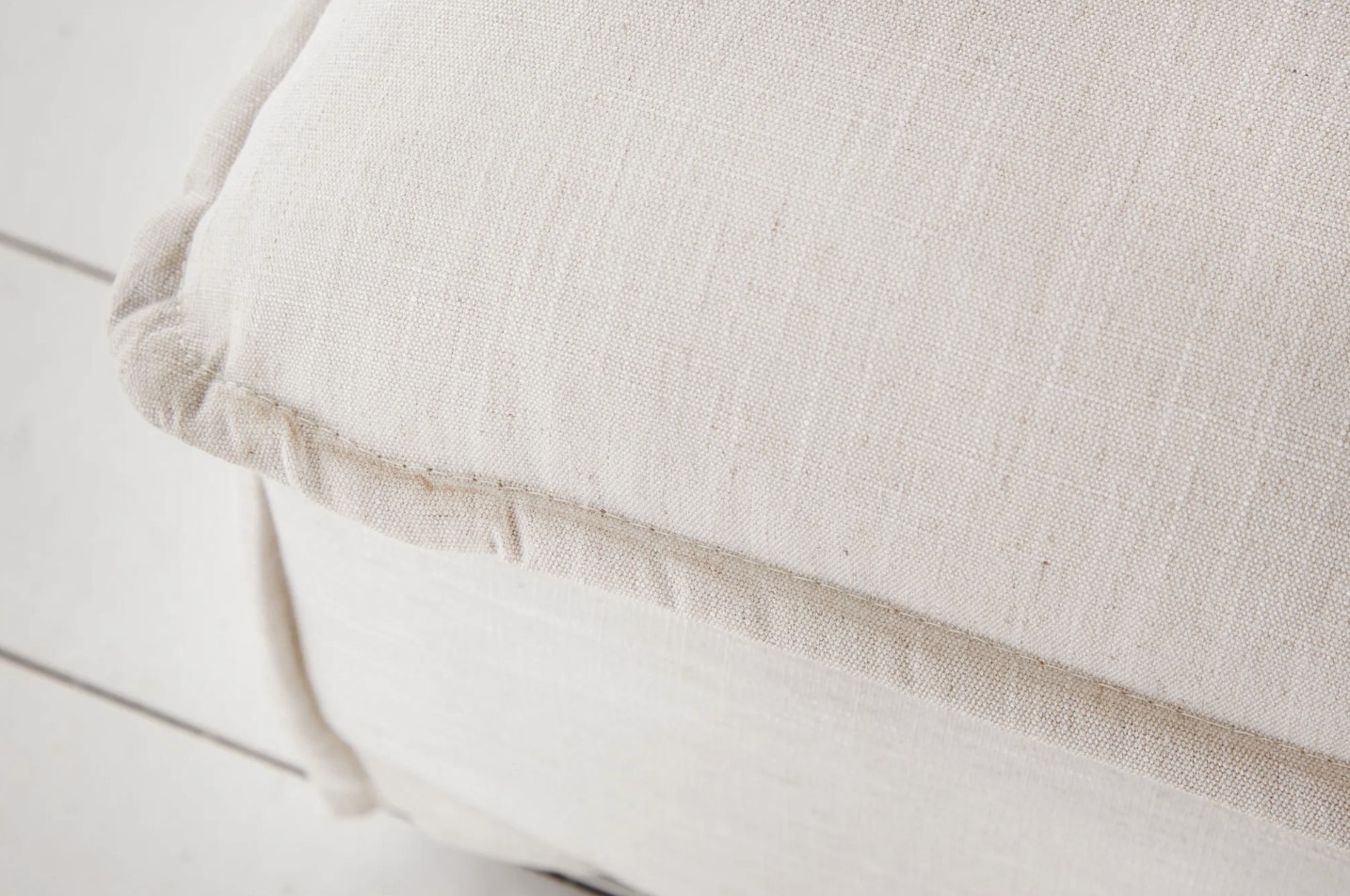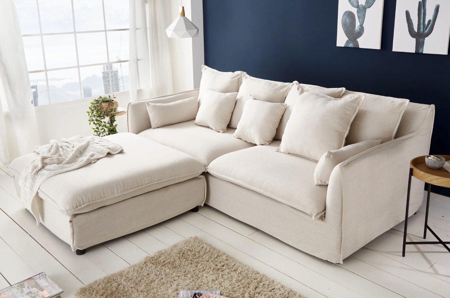 Le canapé d’angle KALIA en blanc est idéal pour créer une ambiance lumineuse et contemporaine dans votre salon. Sa teinte claire agrandit visuellement l’espace et apporte une élégance intemporelle, tandis que son pouf servant d’angle réversible structure parfaitement la pièce pour des moments de détente et de convivialité.