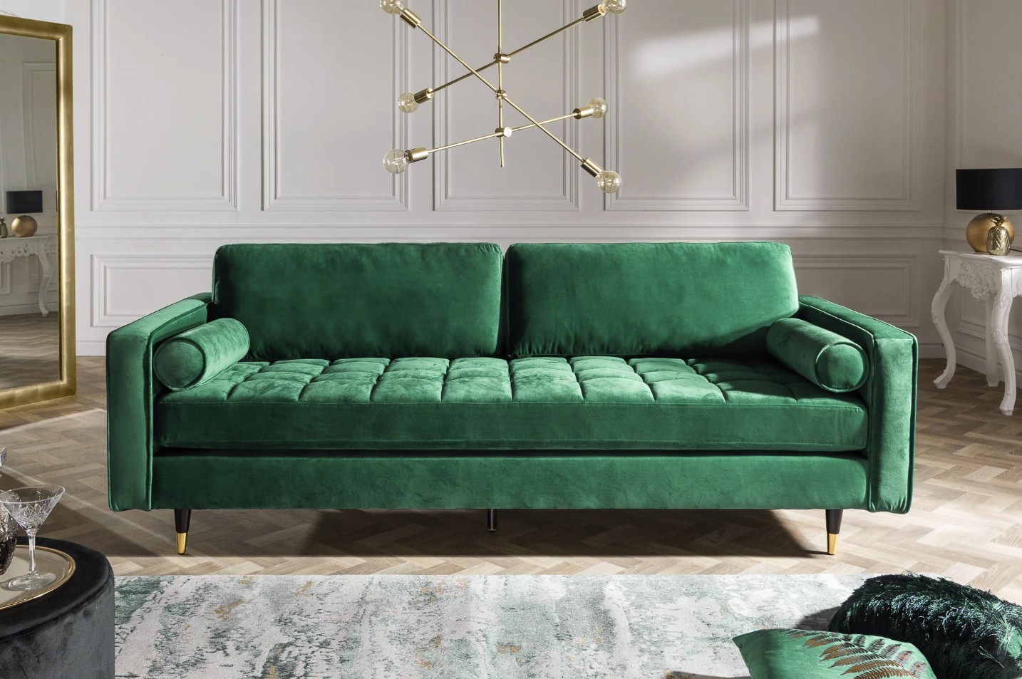| Structure | Velours, polyester, bois d'hévéa, métal |