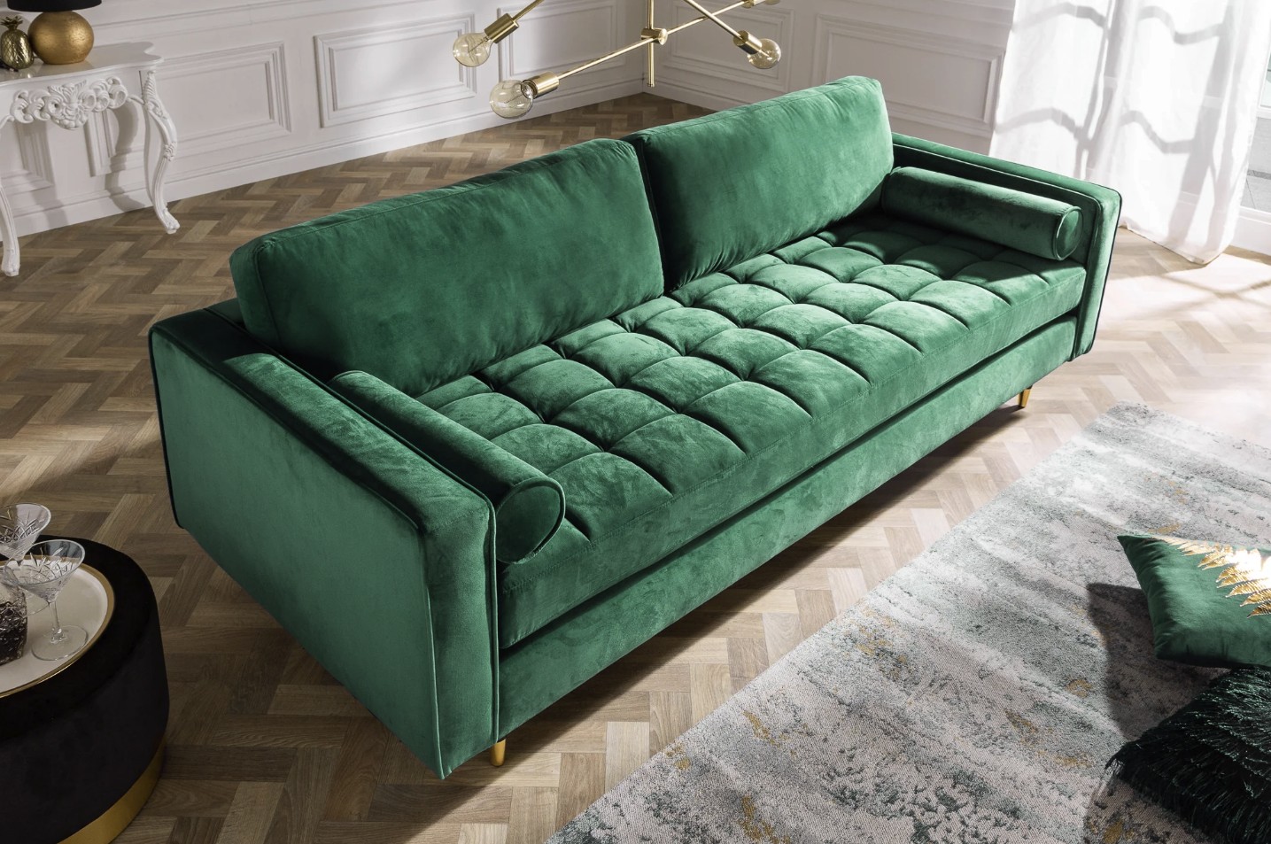 Son revêtement en velours doux associé à une finition matelassée garantit un confort agréable au quotidien. La structure en bois d’hévéa et métal assure solidité, stabilité et durabilité, même en usage intensif.