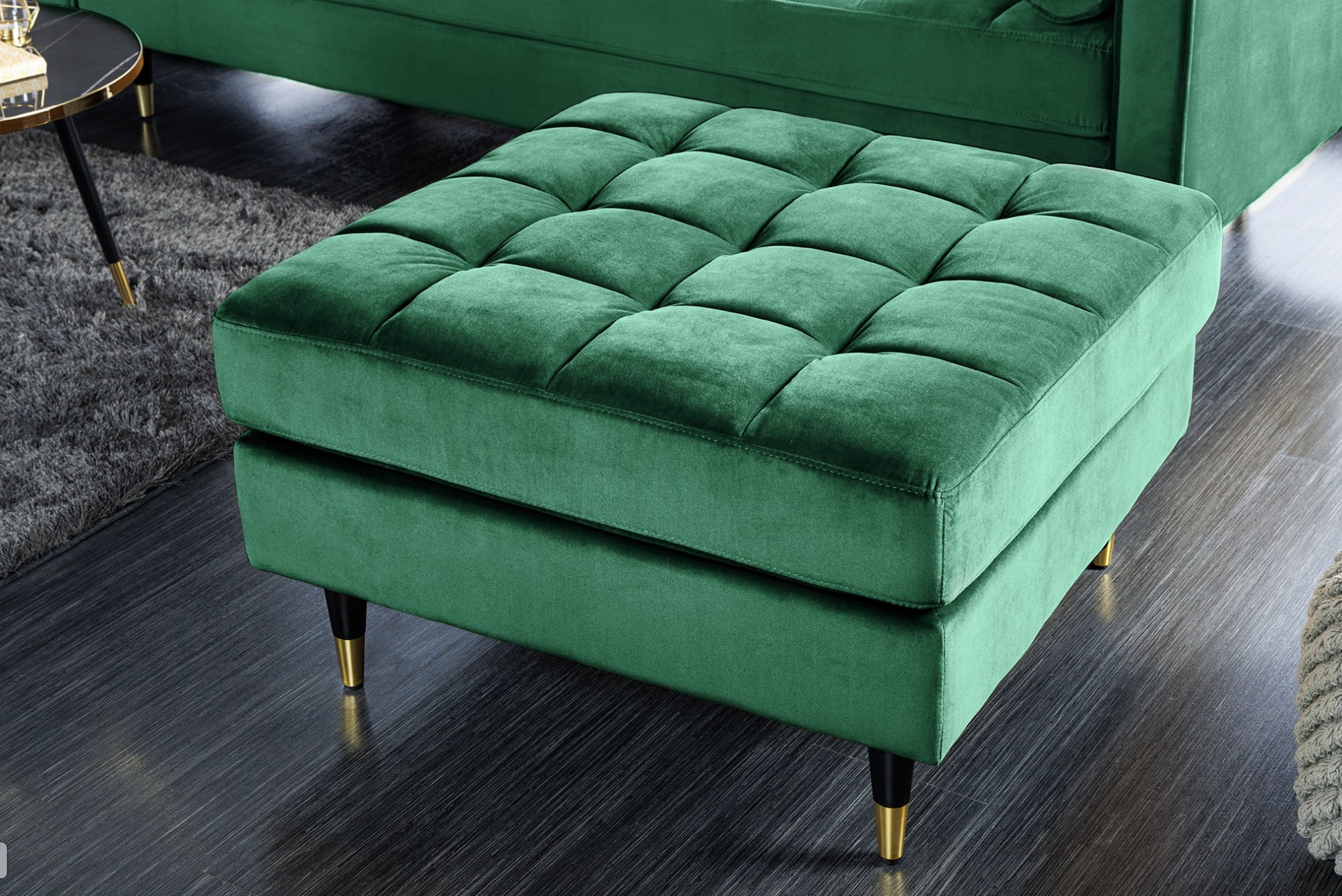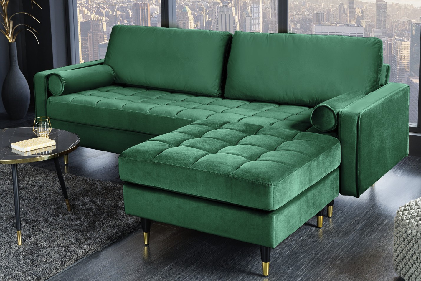 Le canapé d’angle KOLIRI vert émeraude apporte une touche élégante et audacieuse à votre salon grâce à son coloris profond et raffiné. Ce modèle se compose de deux éléments : un canapé principal et un pouf assorti, permettant de multiples configurations selon votre espace et vos envies.
