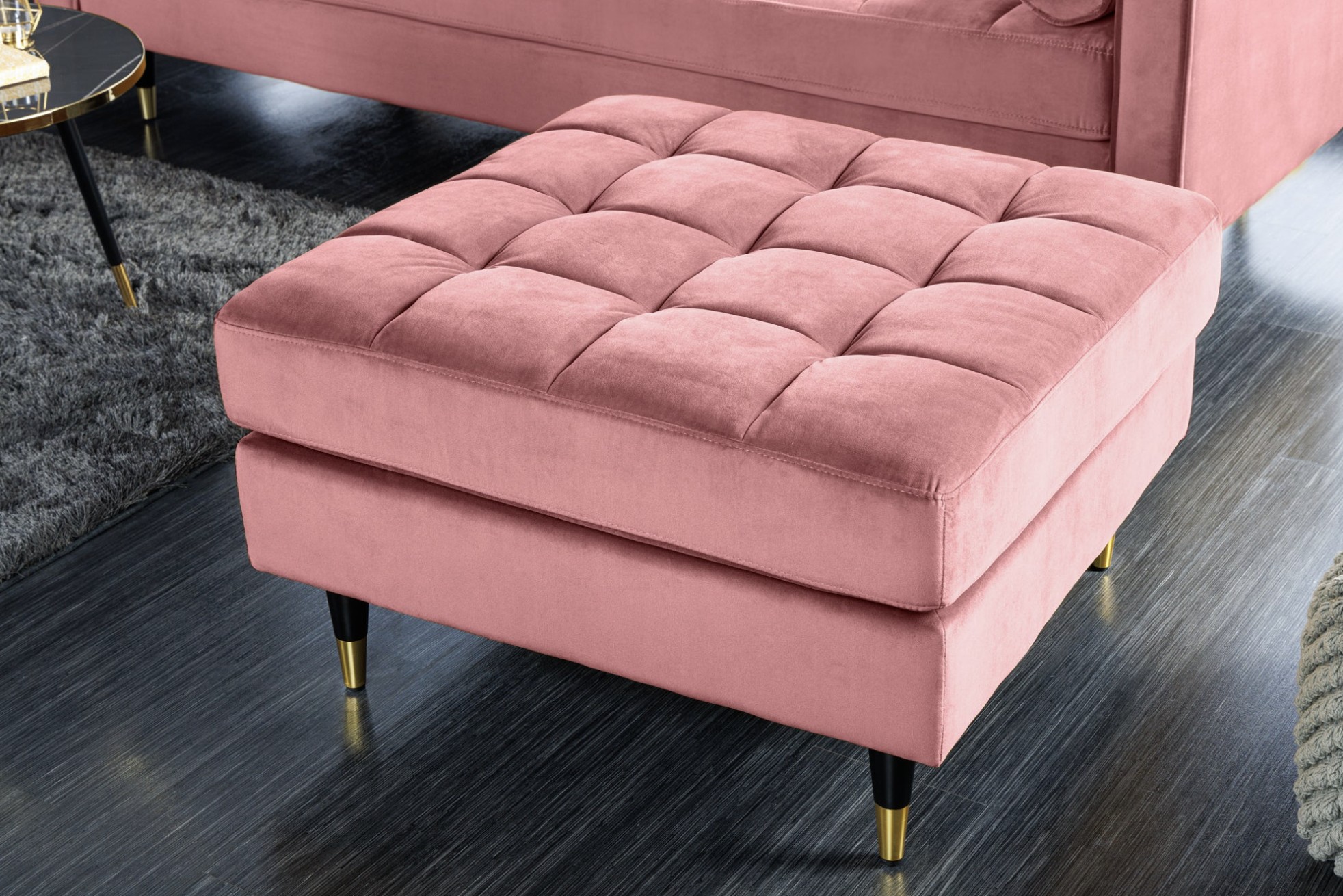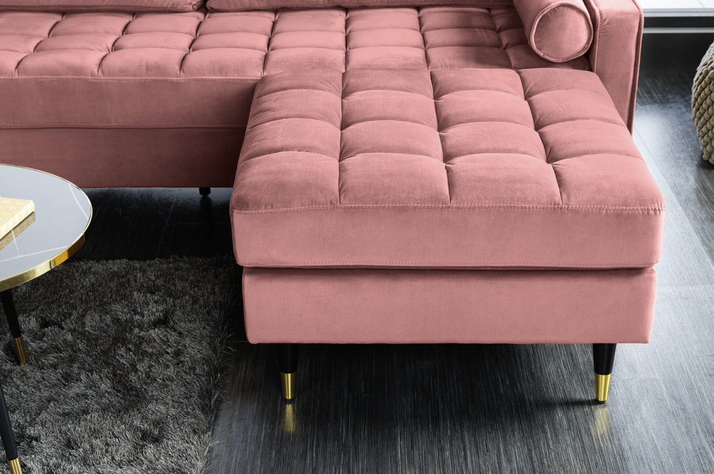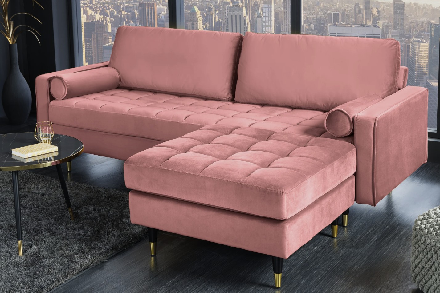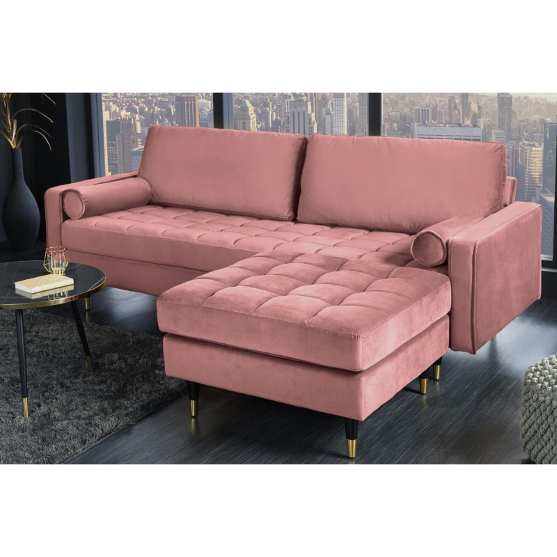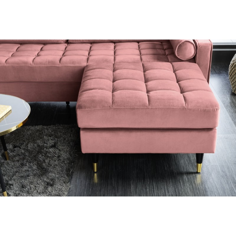 Le canapé d’angle KOLIRI rose poudré séduit par son design contemporain et son coloris délicat, idéal pour apporter une touche chaleureuse et tendance à votre salon. Ce modèle se compose de deux éléments : un canapé principal et un pouf assorti, permettant une configuration flexible et évolutive.
