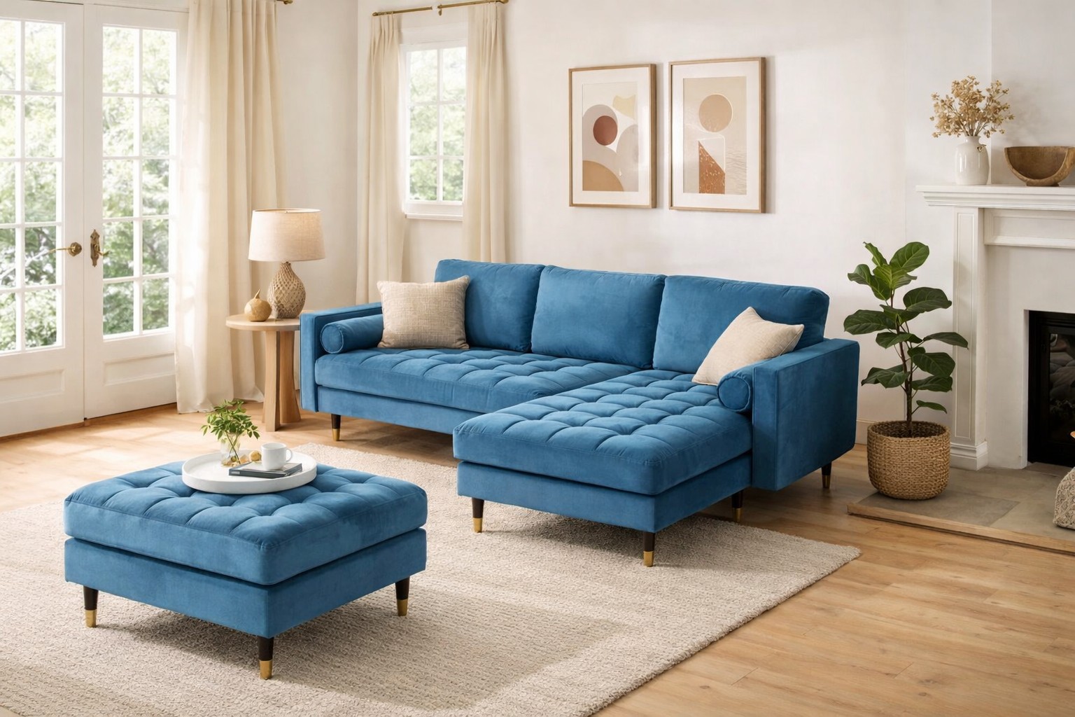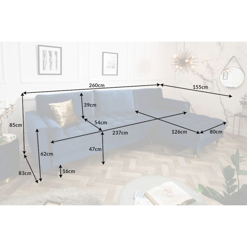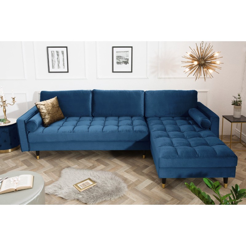Le canapé d’angle KOLIRI en bleu se distingue par son design affirmé et son format généreux. Conçu avec un angle à droite et accompagné d’un pouf indépendant, il permet d’organiser l’espace de manière fluide tout en apportant une touche élégante et moderne à votre intérieur.