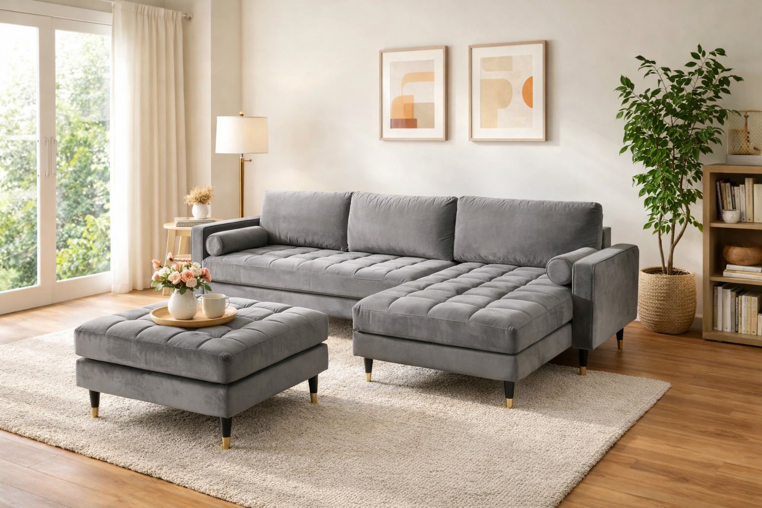 Découvrez les autres modèles de la collection KOLIRI ainsi que notre sélection complète de canapés avec pouf pour aménager votre salon avec style.
