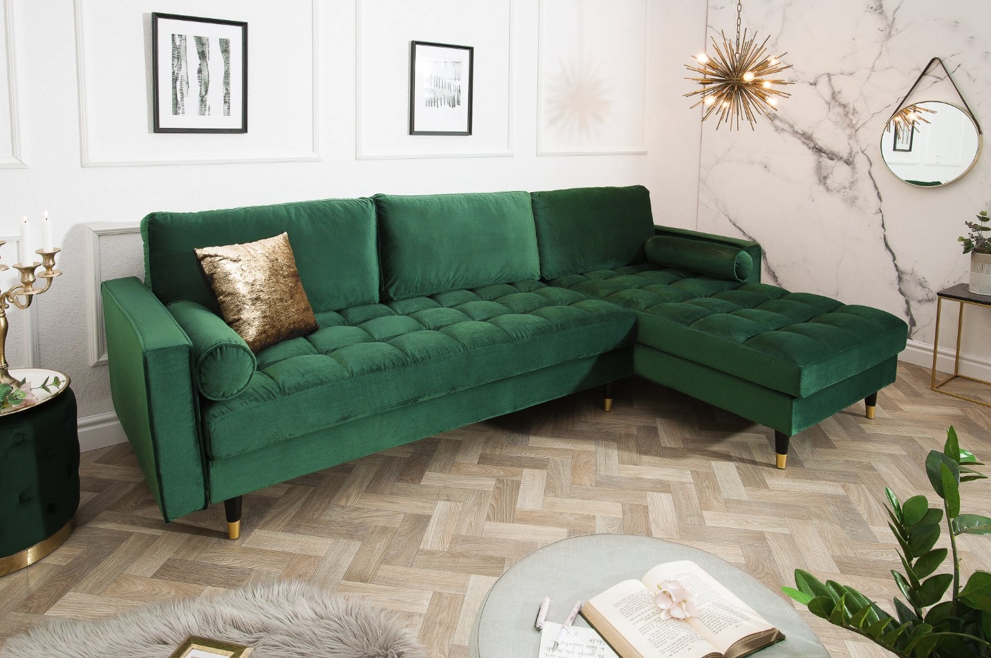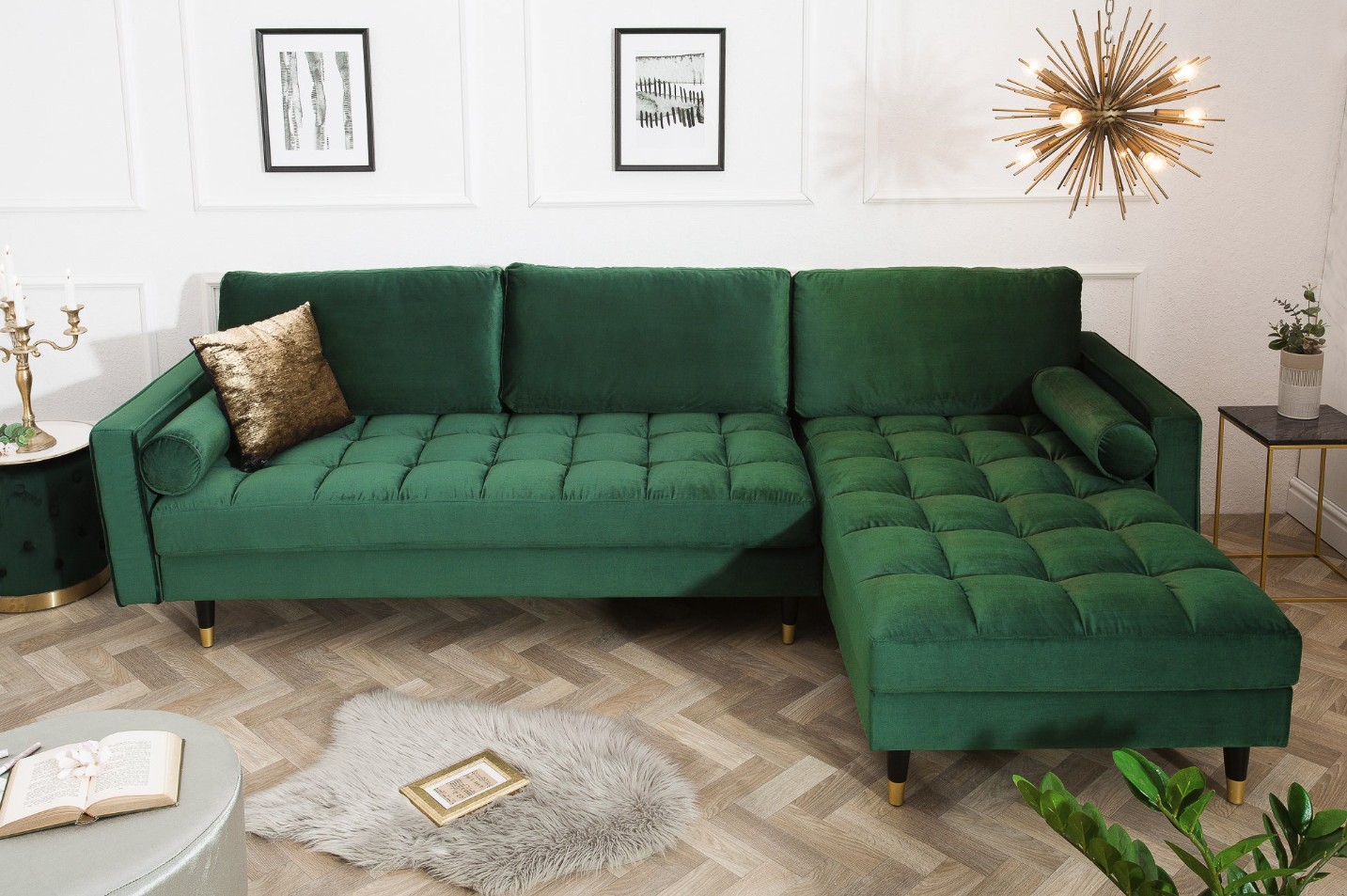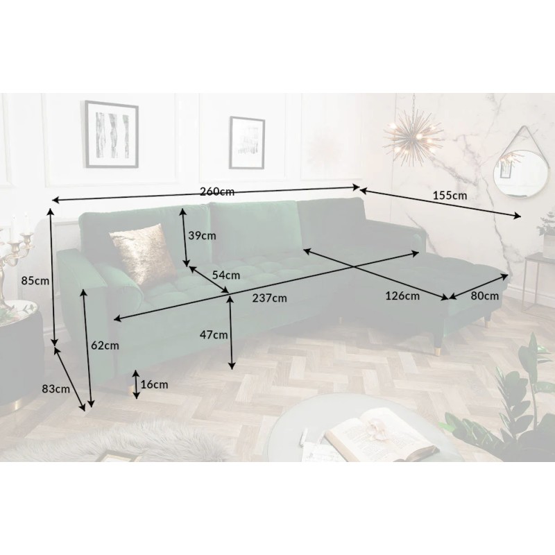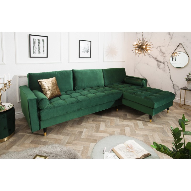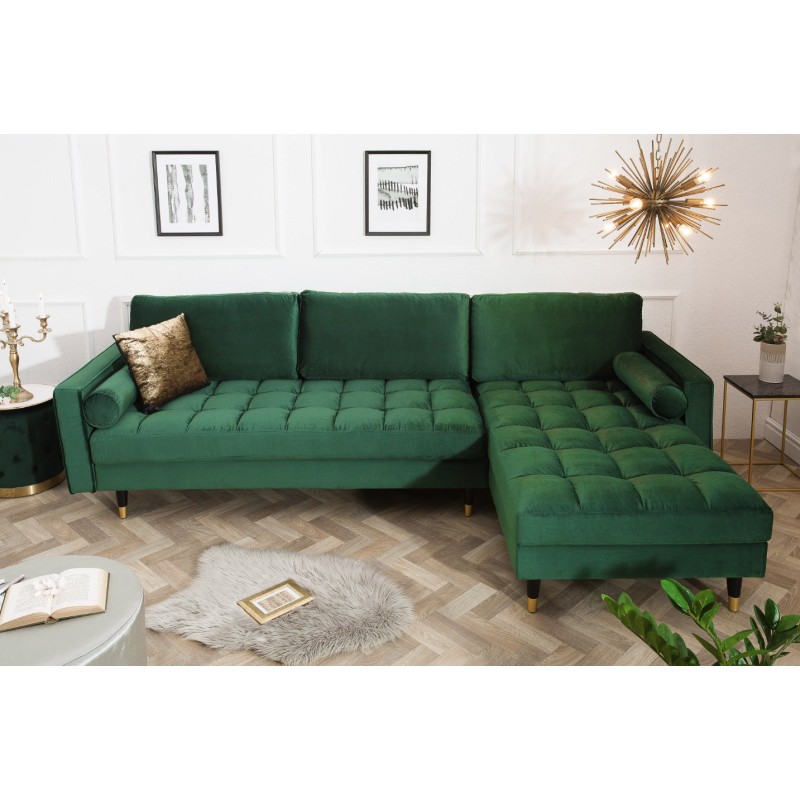 Le canapé d’angle KOLIRI en vert émeraude affirme un style élégant et contemporain. Son angle à droite, associé à un pouf indépendant, permet d’organiser l’espace de manière fonctionnelle tout en créant une atmosphère chaleureuse et raffinée dans votre pièce de vie.