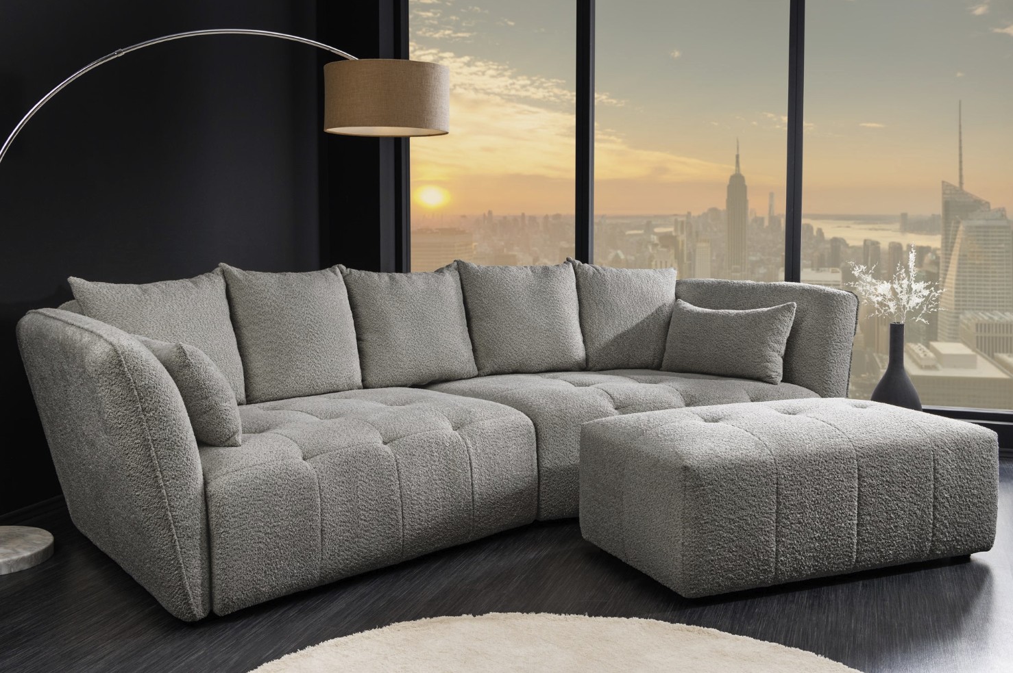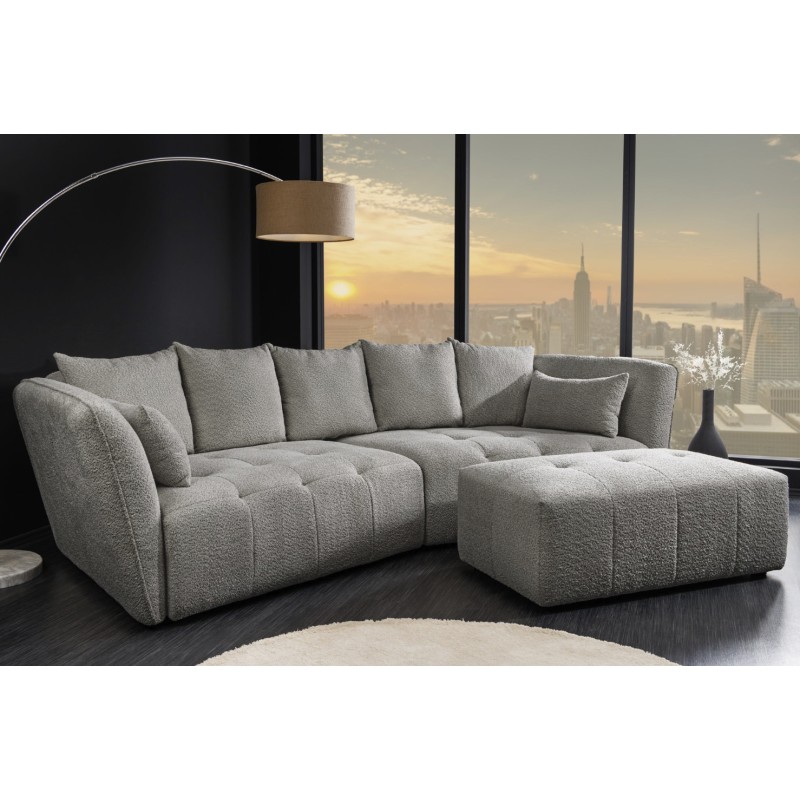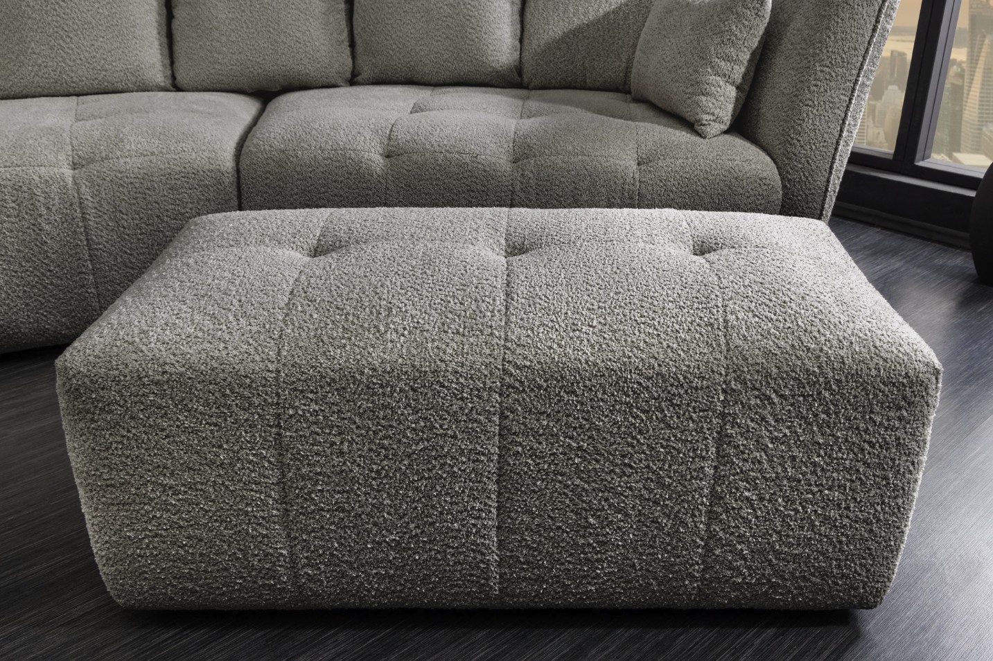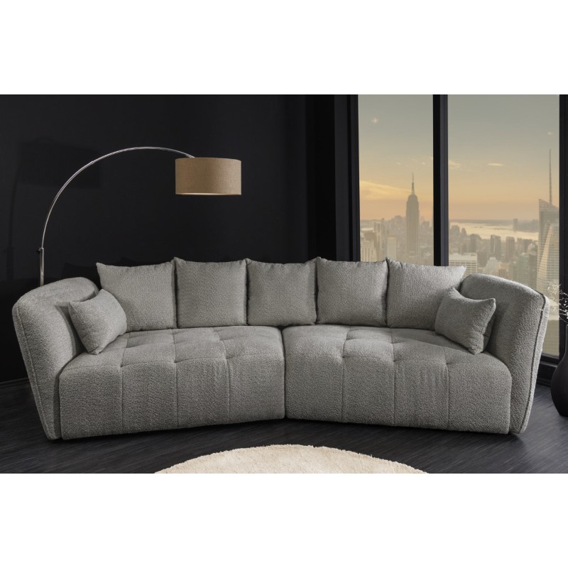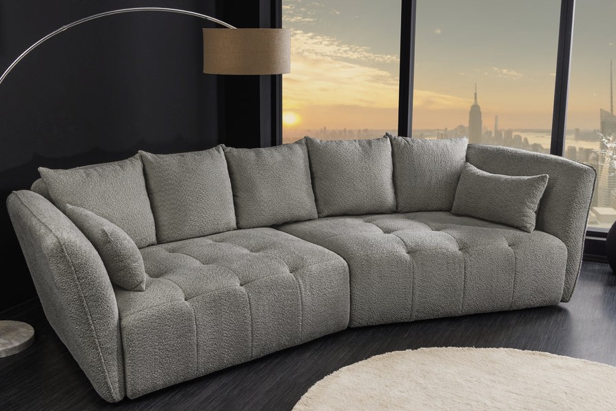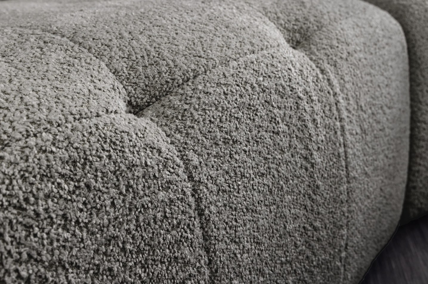 Son revêtement en tissu bouclette apporte une texture douce et chaleureuse, tandis que le coloris gris renforce le caractère intemporel et polyvalent de la collection IMPERIA. Les accoudoirs généreux et les coussins fournis complètent l’ensemble pour une assise accueillante.