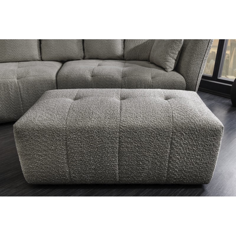 Le pouf peut être positionné à gauche ou à droite du canapé afin de former un angle réversible, s’adaptant ainsi à la configuration de votre pièce. La structure en bois, associée à des ressorts, assure une excellente stabilité et un confort durable au quotidien.