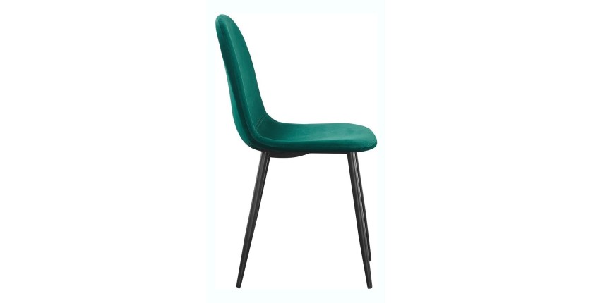 Apportez une touche de modernité à votre intérieur avec la chaise BOYLD en velours vert et piétement noir. Son design contemporain séduit par ses lignes épurées et son alliance réussie de matériaux tendance.