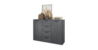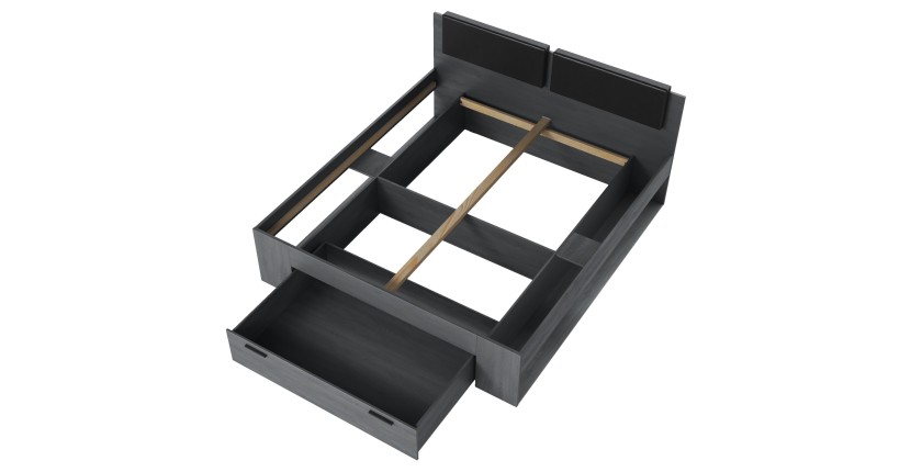 - MODELE : Chambre complète FLOYD composée d'un lit avec tiroirs, d'une armoire, d'une commode, de deux chevets et d'un sommier 160x200