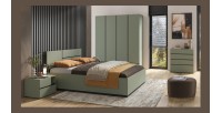 Apportez à votre chambre un souffle de modernité et de praticité avec cette chambre complète HAVANA en coloris vert sauge et noir. Ce pack harmonieux inclut un lit coffre 180x200 cm avec sommier relevable, deux tables de chevet assorties, une armoire 4 portes avec penderie et étagères et une commode 4 tiroirs. L’ensemble séduit par son design structuré et ses finitions raffinées.