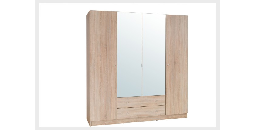 * Armoire, garde robe 4 portes, 2 tiroirs : 200x212x59 cm (penderies + étagères incluses).