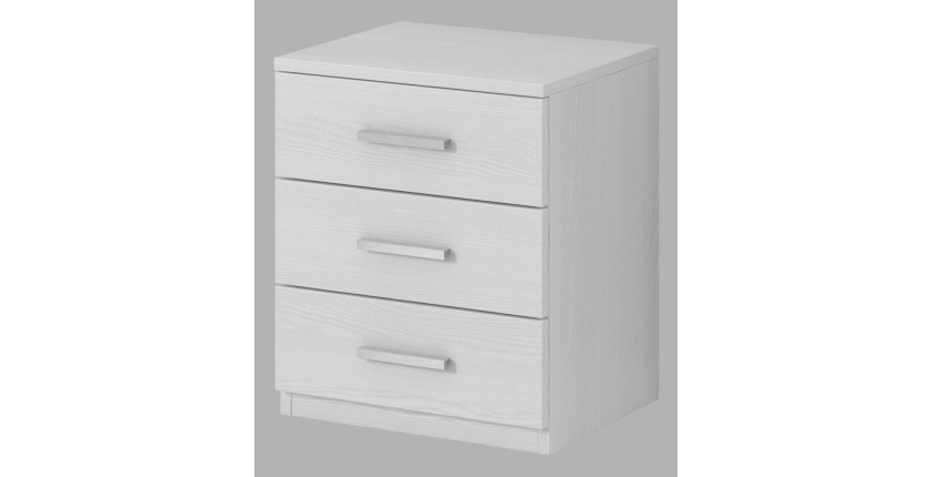 - CARACTÉRISTIQUES : Chevets composé de trois tiroirs. Lit design 140x200 avec tiroirs au bout du lit et niches sur les côtés du lits. Sommier inclus, Armoire avec 2 portes coulissantes dont une avec un grand miroir. Commode avec 2 portes et 4 tiroirs.