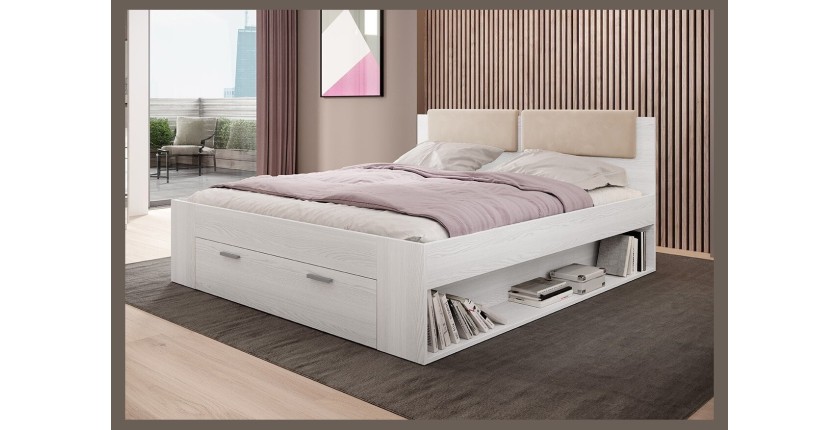 - MODELE : Chambre complète FLOYD composée d'un lit avec tiroirs, d'une armoire, d'une commode, de deux chevets et d'un sommier 160x200