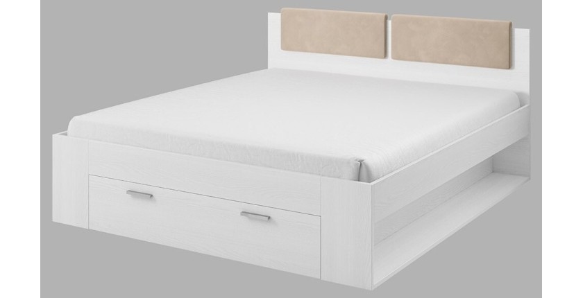 - MODELE : Chambre complète FLOYD composée d'un lit avec tiroirs, d'une armoire, d'une commode, de deux chevets et d'un sommier 180x200