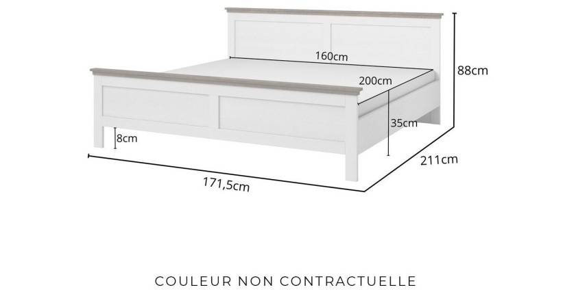 * Lit + tête de lit : largeur 171,5 x Longueur 211 x Hauteur 88cm. (Couchage 160x200 cm)