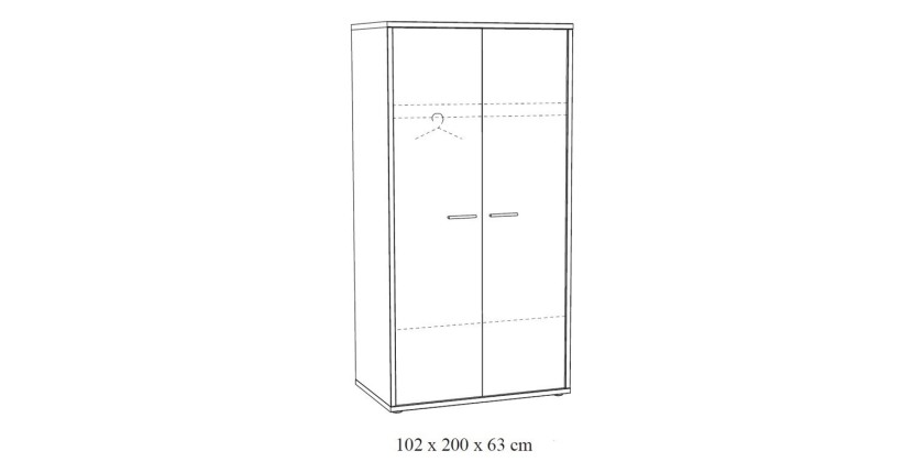 * Armoire : 2 portes battantes. 1 grande penderie et 2 grandes étagères. Poids à vide : 114,1Kg.