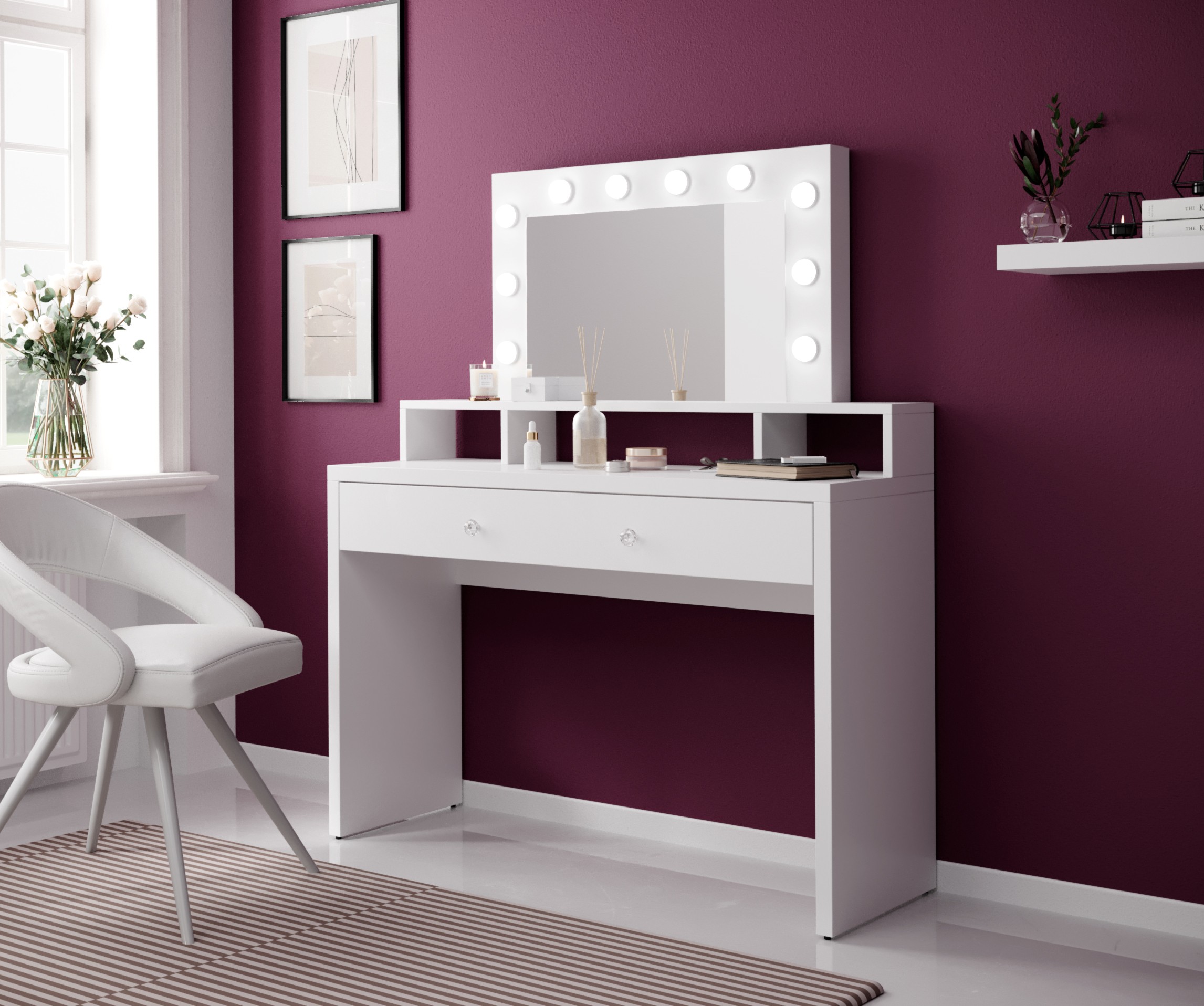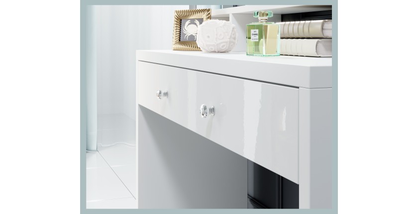 La coiffeuse SENSA est la pièce idéale pour aménager un véritable coin beauté dans votre chambre. Avec son design blanc intemporel, elle allie élégance et praticité pour organiser facilement vos produits de maquillage et accessoires.
