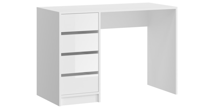 Organisez votre espace beauté avec la coiffeuse ESTRELLA blanche, un meuble pratique et élégant au style classique. Cette coiffeuse propose 4 tiroirs de rangement latéraux pour vos accessoires, maquillage, bijoux ou soins, le tout dans une finition blanche laquée moderne et lumineuse.