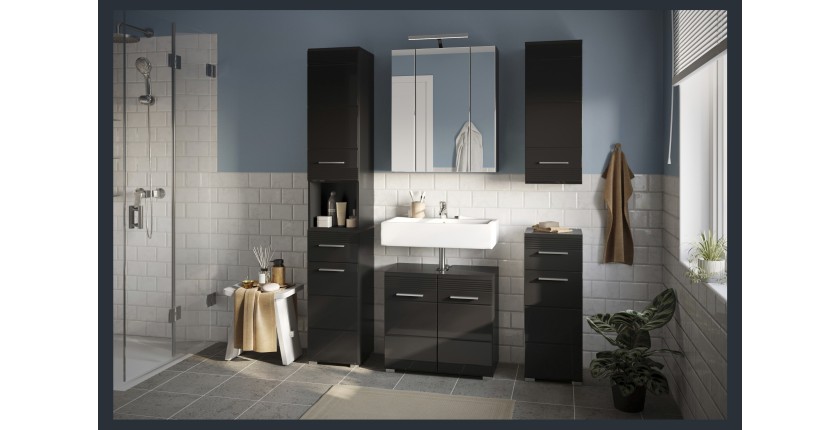 Le meuble de rangement KLEANKIN pour salle de bain, en noir laqué, est la solution idéale pour un rangement optimisé et un design moderne. Il offre un espace fonctionnel et élégant pour votre salle de bain.