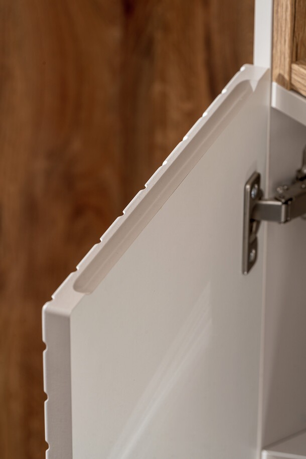Compacte et pratique, la colonne AOKI (L30 × P25 × H140 cm) propose deux portes battantes avec des tablettes intérieures pour organiser efficacement vos produits de soin. Sa pose suspendue allège visuellement l’espace et facilite l’entretien du sol, tout en apportant une impression de légèreté et de modernité.