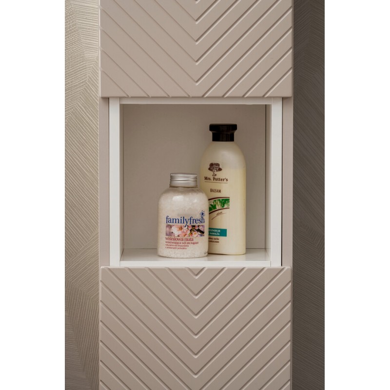 Apportez une touche zen et contemporaine à votre salle de bain avec la colonne AOKI. Cette pièce suspendue combine une élégance graphique subtile à la douceur du beige cachemire mat, dans un esprit japandi minimaliste qui inspire la sérénité.