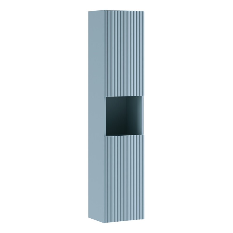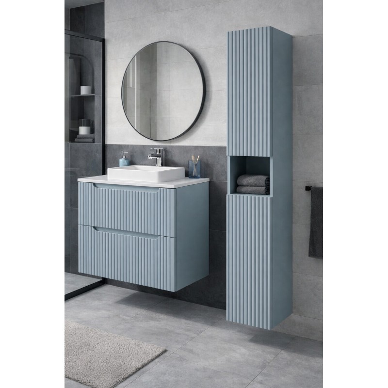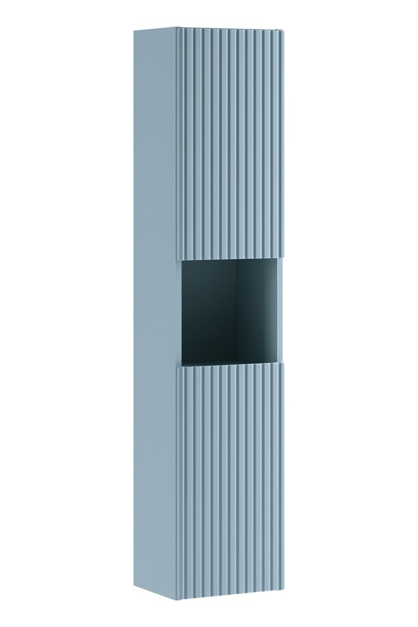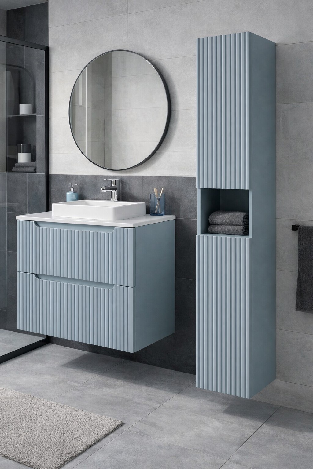 La colonne de salle de bain VANO séduit par son design contemporain et son coloris bleu denim profond qui apporte du caractère à votre intérieur. Ses façades rainurées verticalement et ses poignées discrètement intégrées soulignent un style moderne et élégant tout en conservant une esthétique intemporelle.