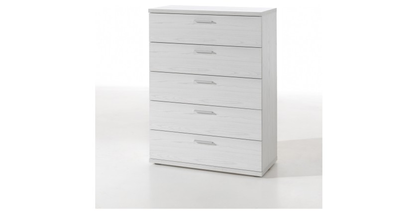 Laissez vous charmer par la commode OLVENA grâce à son design épuré. Ses 5 grandes tiroirs seront parfaits pour le rangement de vos affaires.