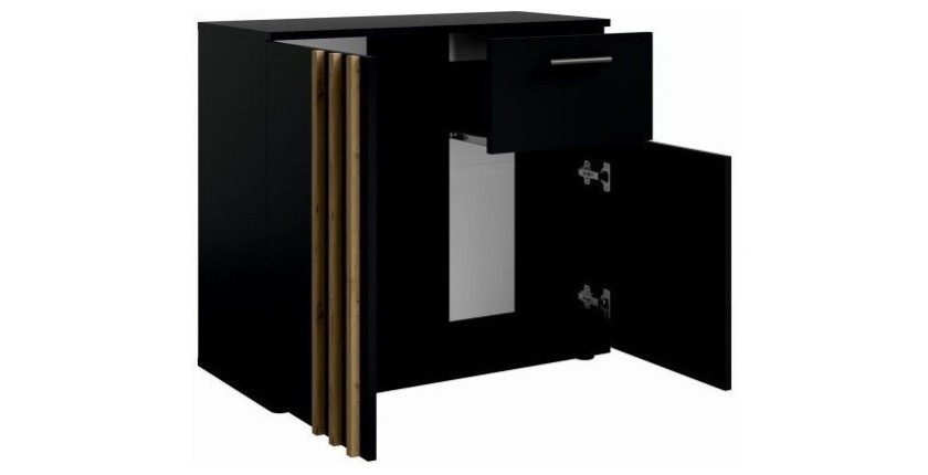 Apportez une touche d'élégance et de modernité à votre intérieur avec la commode VARIA de la collection VARIA. Ce meuble polyvalent, qui peut également être utilisé comme buffet, est conçu pour s'intégrer parfaitement dans tout type d'espace, qu'il s'agisse de votre salon, chambre ou salle à manger. Dotée de deux portes et d'un tiroir, cette commode offre un espace de rangement généreux, idéal pour organiser vos affaires tout en maintenant une esthétique impeccable. Sa finition en noir et chêne artisan ajoute une touche d'élégance intemporelle, convenant aussi bien aux intérieurs modernes que classiques.