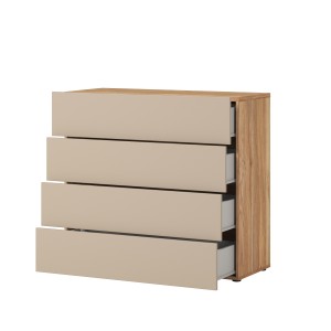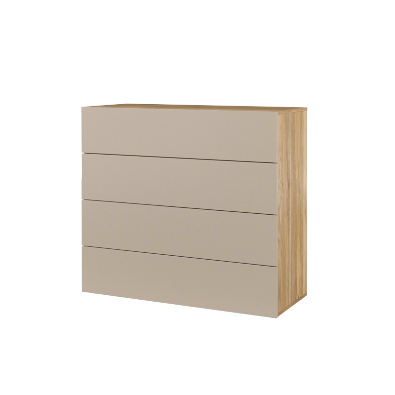Organisez votre espace avec style grâce à la commode 4 tiroirs VOX dans un élégant coloris chêne et beige. Avec des dimensions de 100 cm de largeur, 91 cm de hauteur et 41 cm de profondeur, cette commode offre une capacité généreuse tout en ajoutant une touche contemporaine à votre intérieur. Parfaite pour la chambre ou le dressing, elle allie praticité et esthétique.