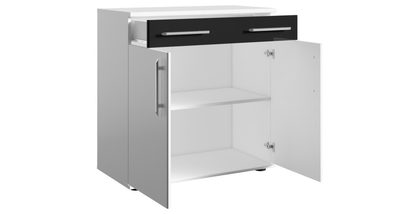 Optez pour la commode blanche DUBLIN, un meuble design alliant praticité et style. Avec ses 2 tiroirs et 2 portes, cette commode offre un espace de rangement optimisé pour votre chambre.